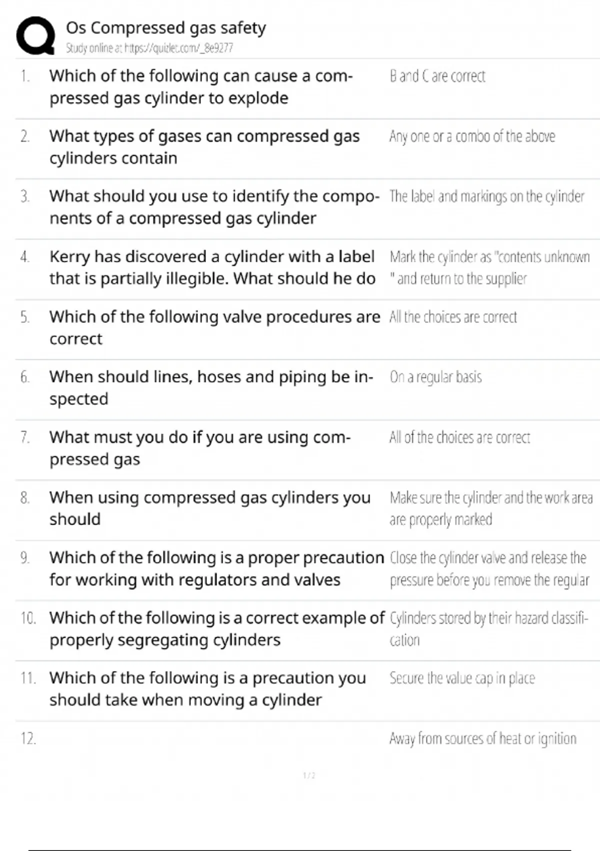 Ace your Compressed Gas Safety certification exam with this comprehensive 2025 practice test and study guide. This essential resource covers all key domains: cylinder handling/storage, gas properties, hazard identification, PPE requirements, and emergency response protocols. Designed for industrial workers, lab technicians, and safety professionals, these verified questions and detailed answers will help you master safety procedures, improve risk management skills, and build the confidence needed to score 100% on your certification test and ensure workplace safety.