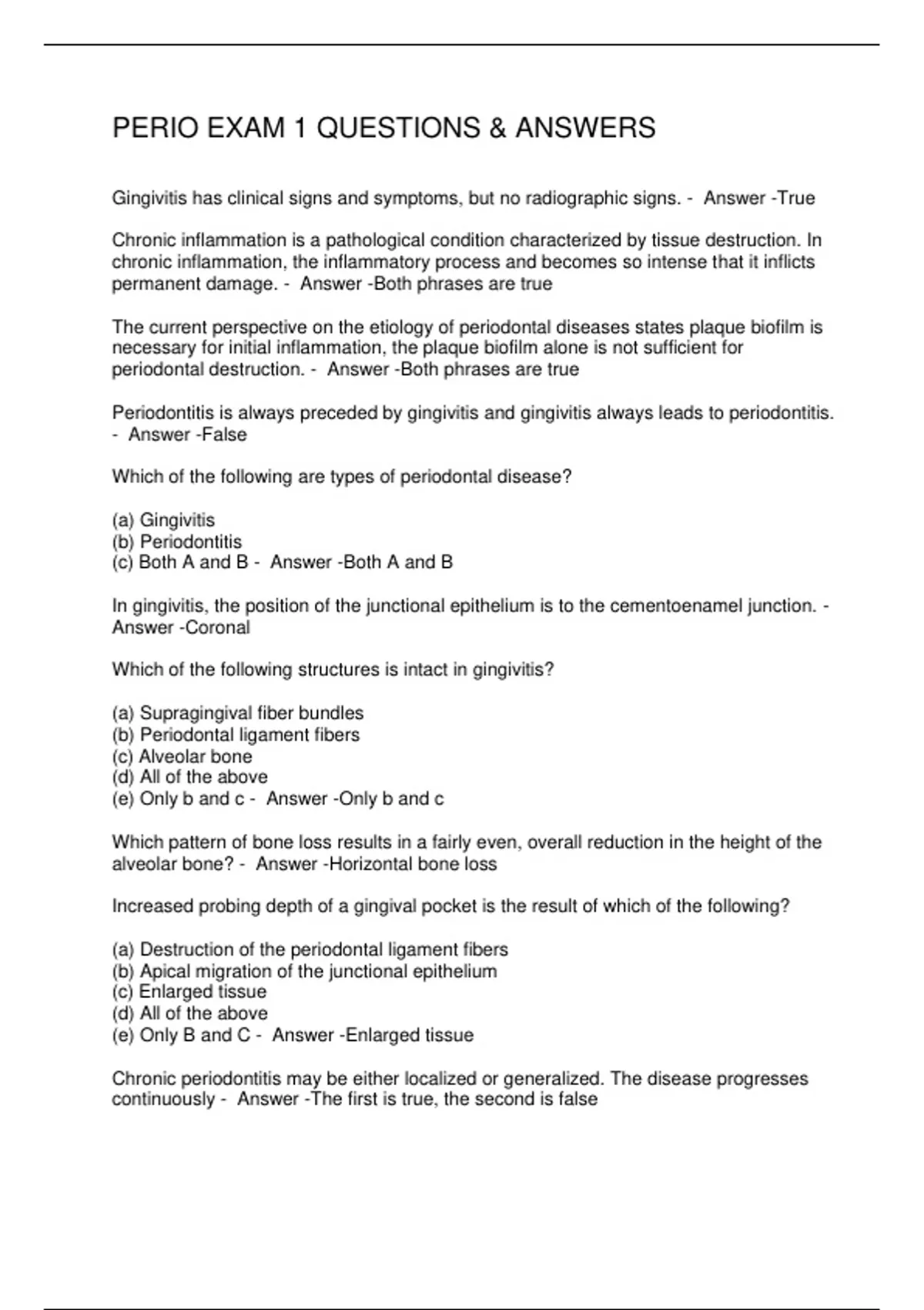 PERIO EXAM 1 QUESTIONS & ANSWERS