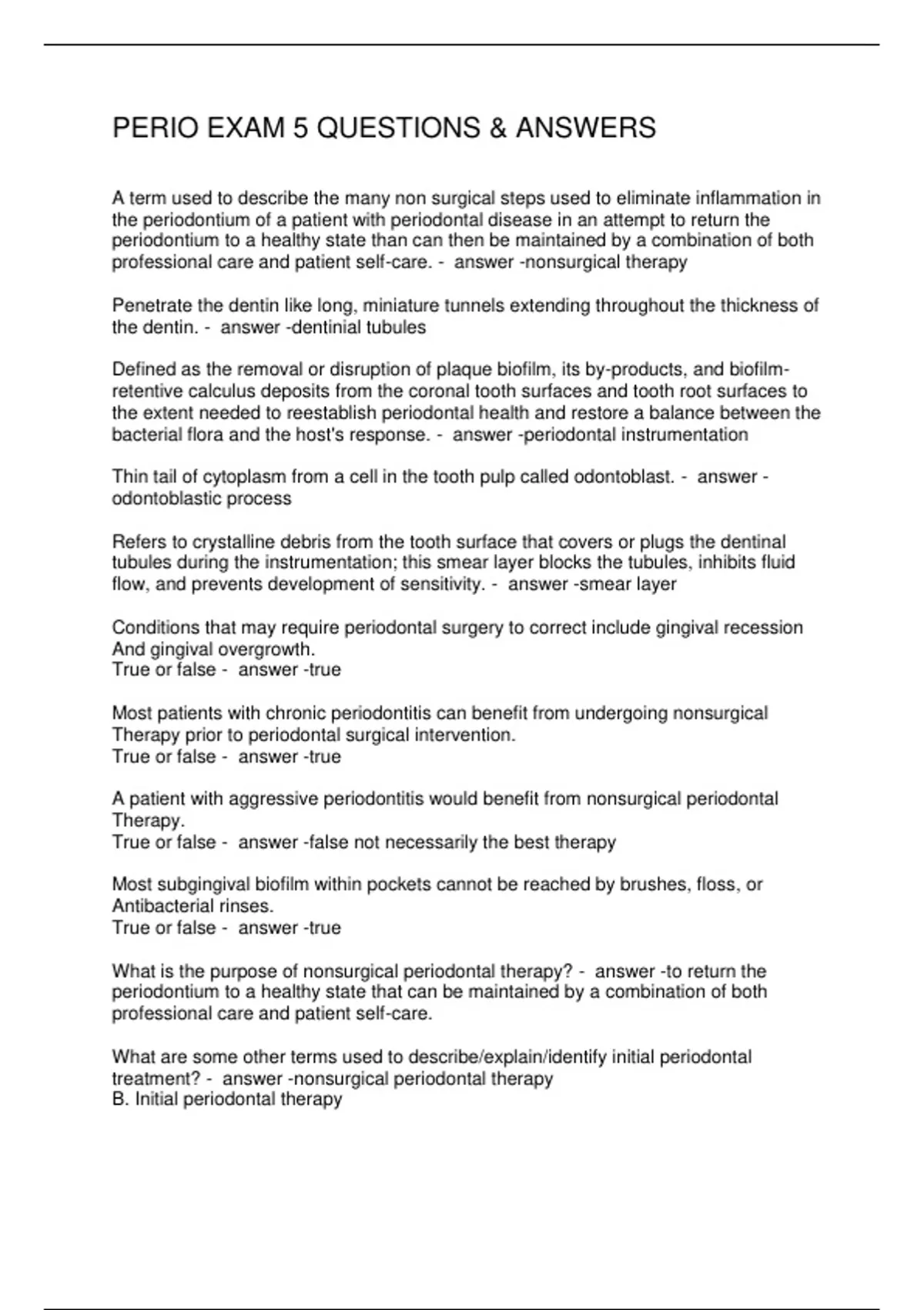 PERIO EXAM 5 QUESTIONS & ANSWERS