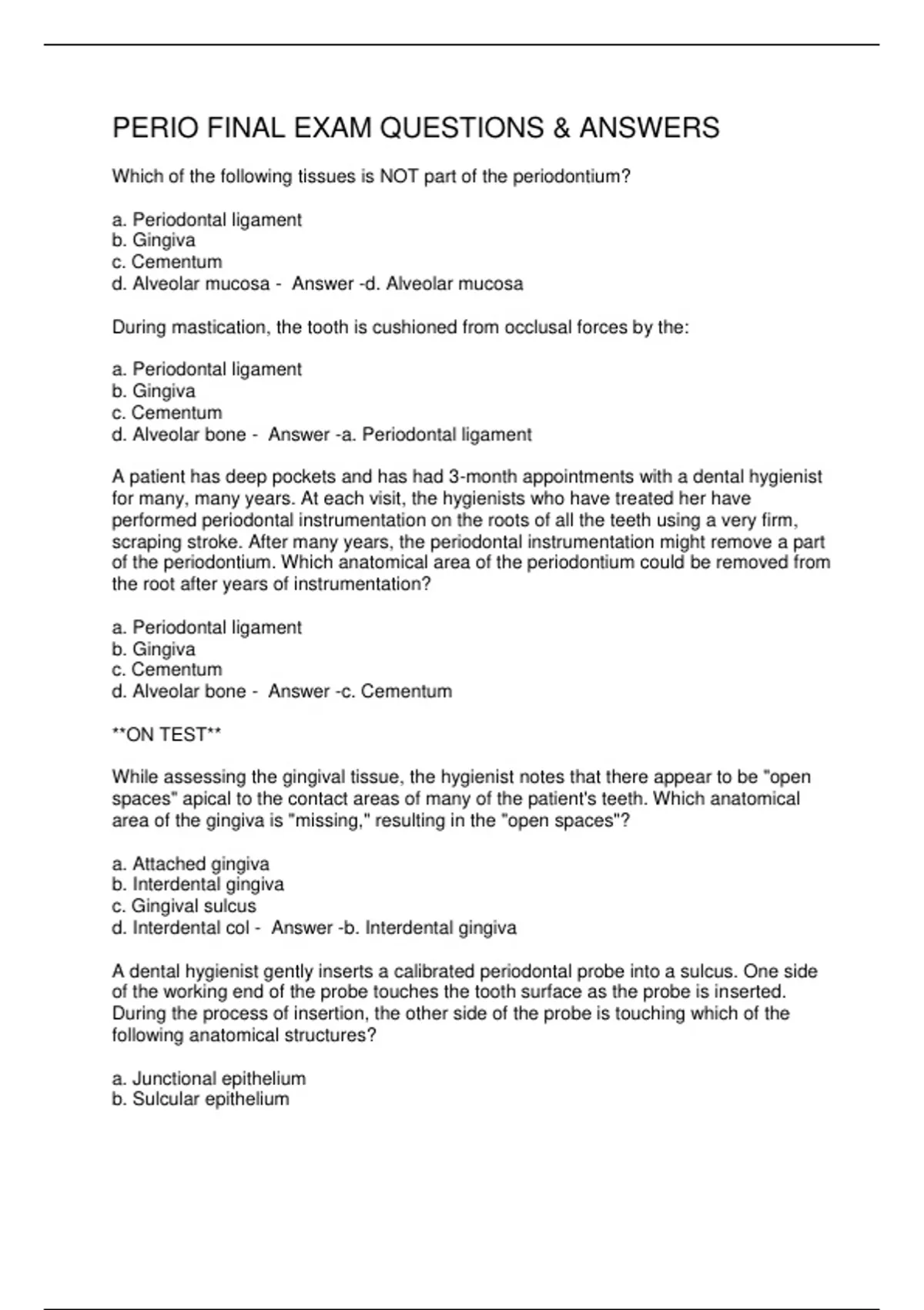 PERIO FINAL EXAM QUESTIONS & ANSWERS