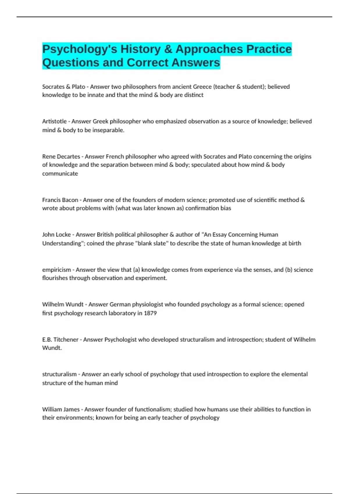E.B. Titchener - Answer Psychologist who developed structuralism and introspection; student of Wilhelm