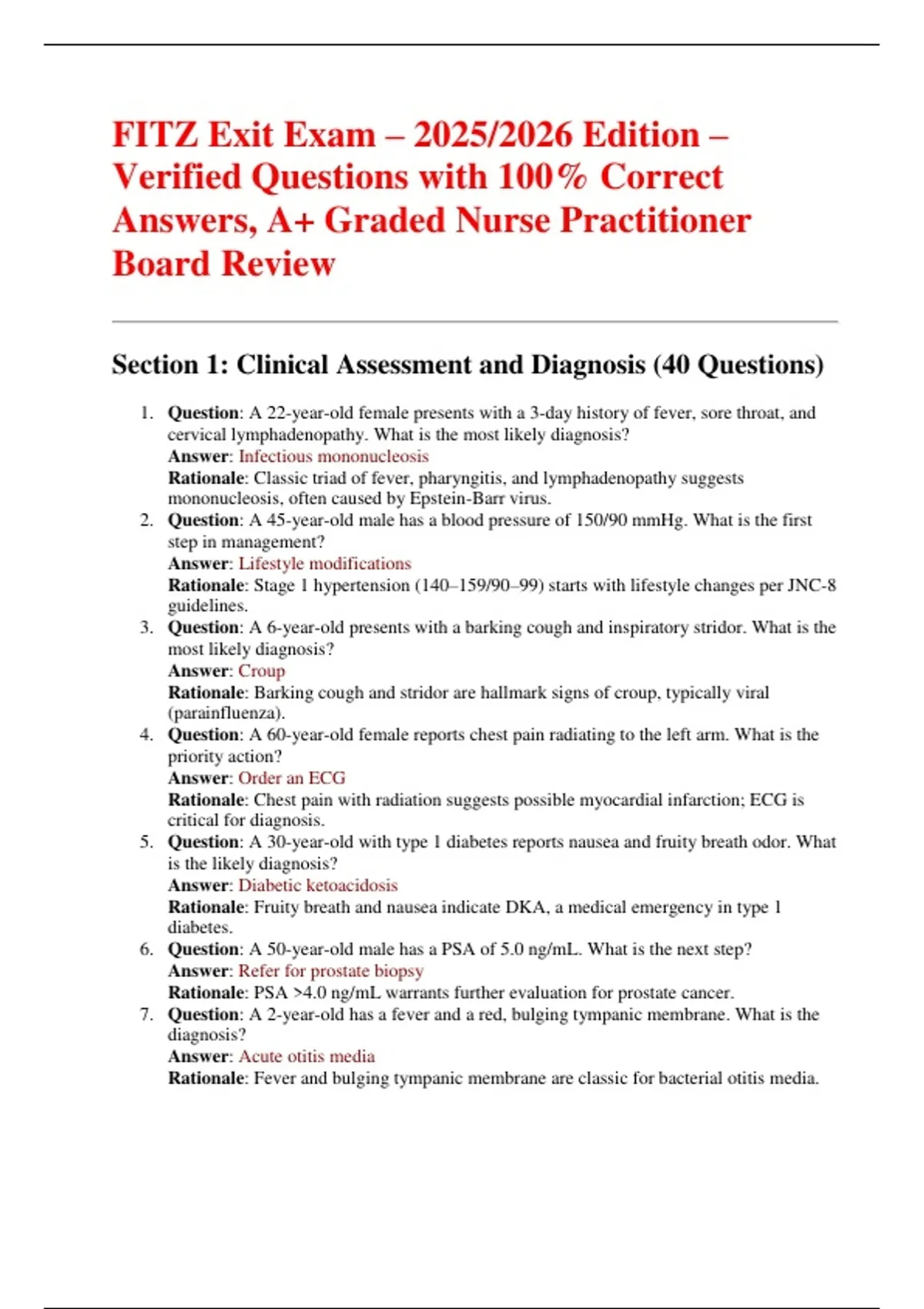 Answers, A+ Graded Nurse Practitioner