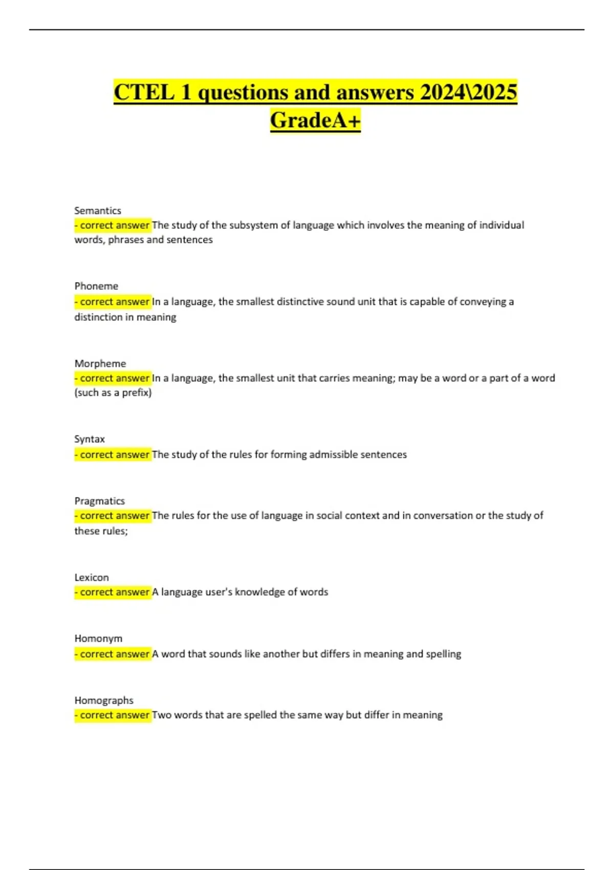 - correct answer A word that sounds like another but differs in meaning and spelling