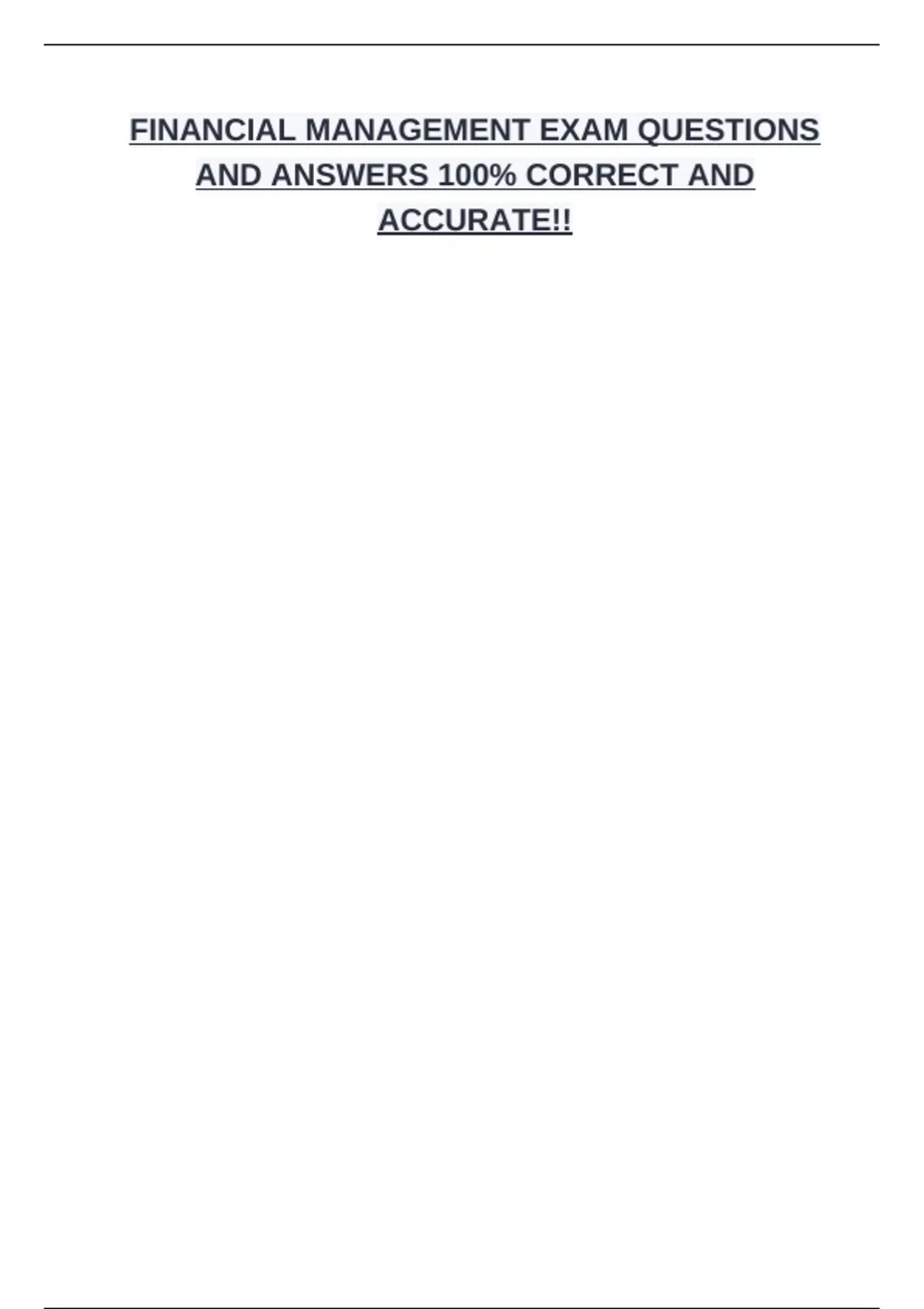 FINANCIAL MANAGEMENT EXAM QUESTIONS AND ANSWERS 100% CORRECT AND ACCURATE!!