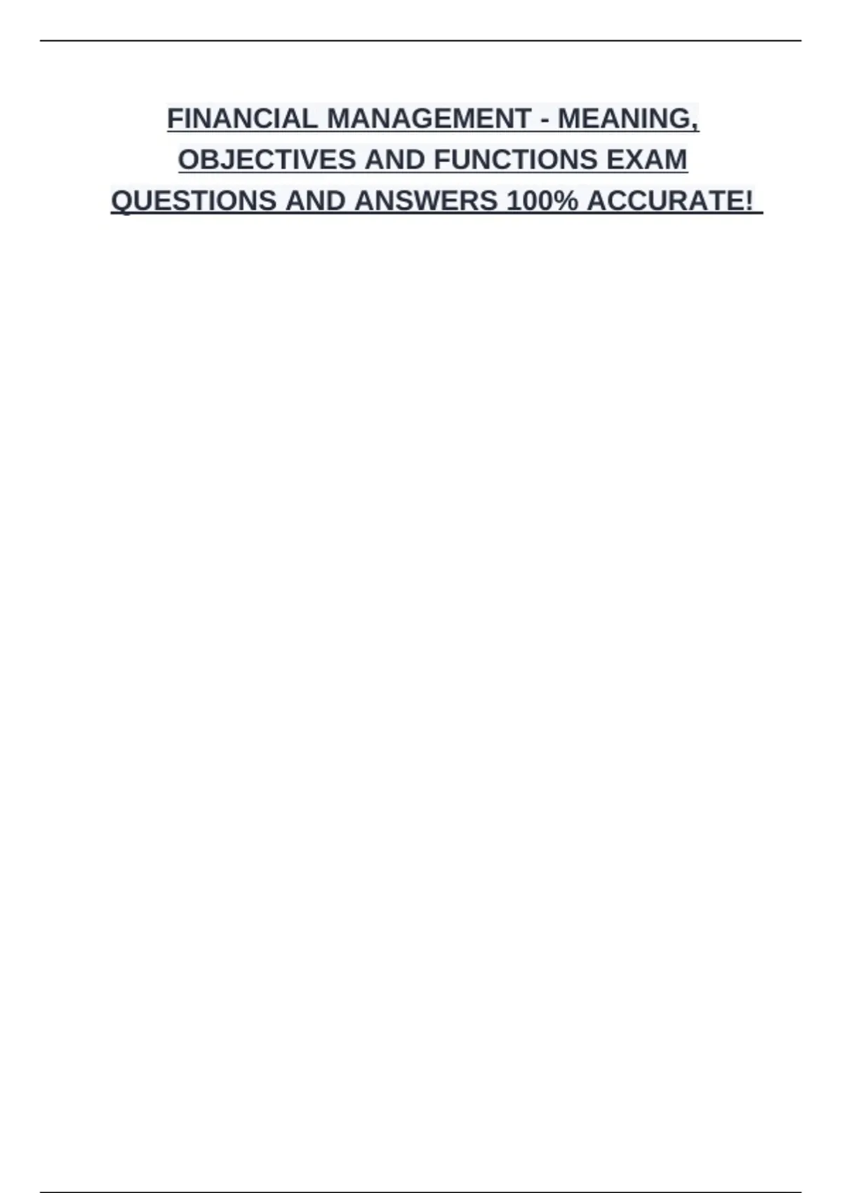 FINANCIAL MANAGEMENT - MEANING, OBJECTIVES AND FUNCTIONS EXAM QUESTIONS AND ANSWERS 100% ACCURATE!