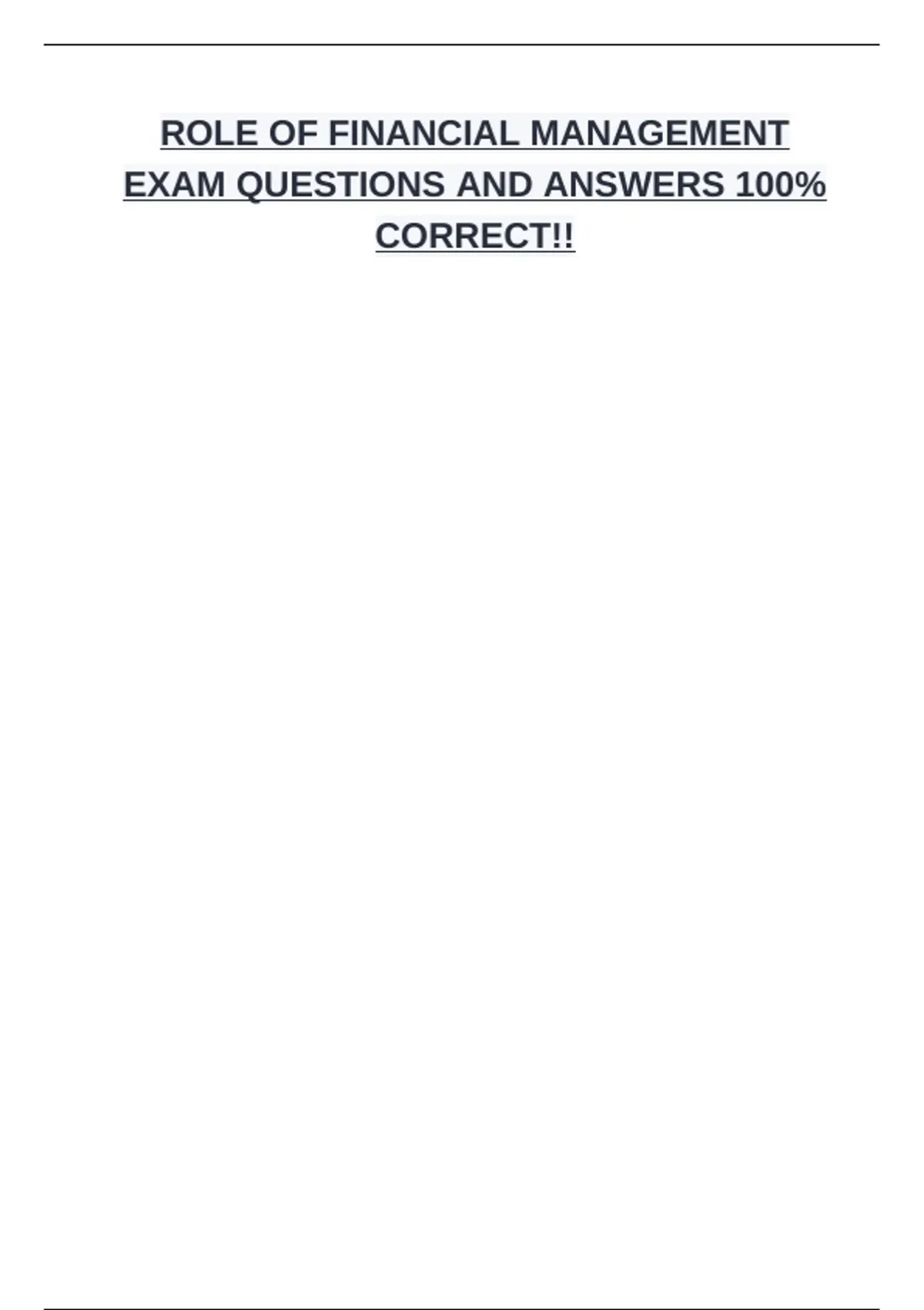 ROLE OF FINANCIAL MANAGEMENT EXAM QUESTIONS AND ANSWERS 100% CORRECT!!