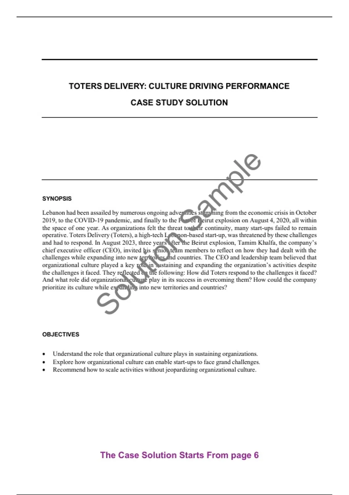 Get the Toters Delivery Culture Driving Performance Case Study Solution and Analysis by Alain Daou, Anas Kharpoutly, Raghida Abdallah Yassine | Case ID: W35165. We guarantee that this case solution is 100% original, official, and not AI-generated. It is a plagiarism-free, complete, and well-structured solution, perfect for exam preparation, assignments, and research.