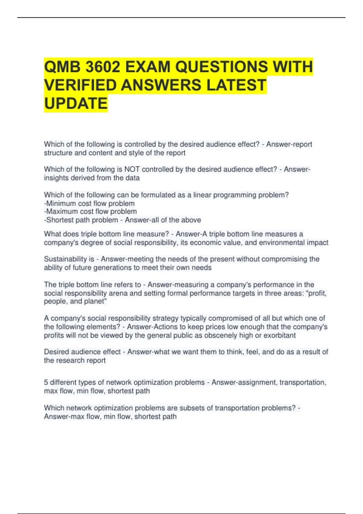 QMB 3602 EXAM QUESTIONS WITH VERIFIED ANSWERS LATEST UPDATE