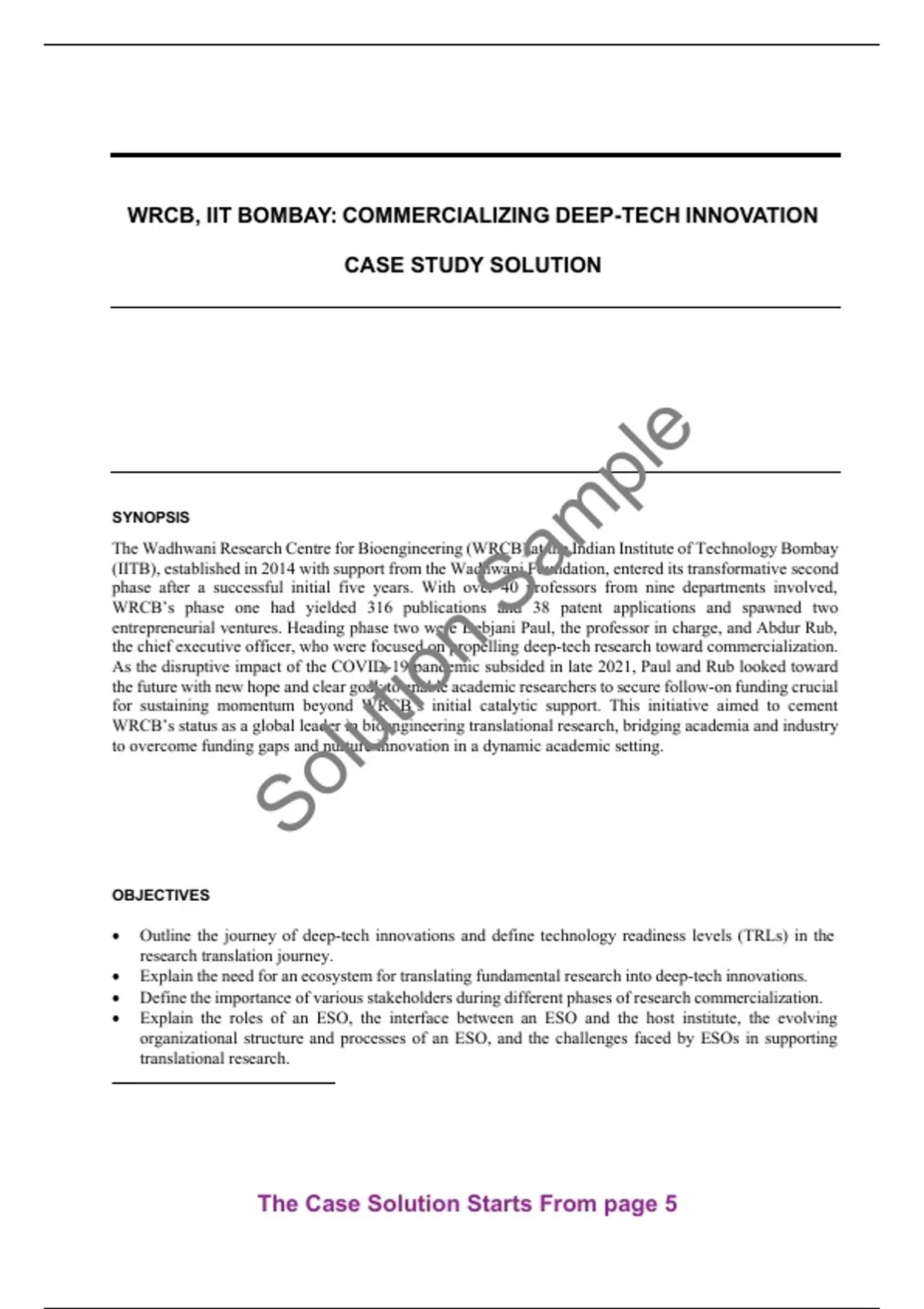 Get the WRCB IIT Bombay Commercializing Deep-Tech Innovation Case Study Solution and Analysis by Kulbir Lamba, Rohan Chinchwadkar, Sankalp Pratap | Case ID: W36726. We guarantee that this case solution is 100% original, official, and not AI-generated. It is a plagiarism-free, complete, and well-structured solution, perfect for exam preparation, assignments, and research.