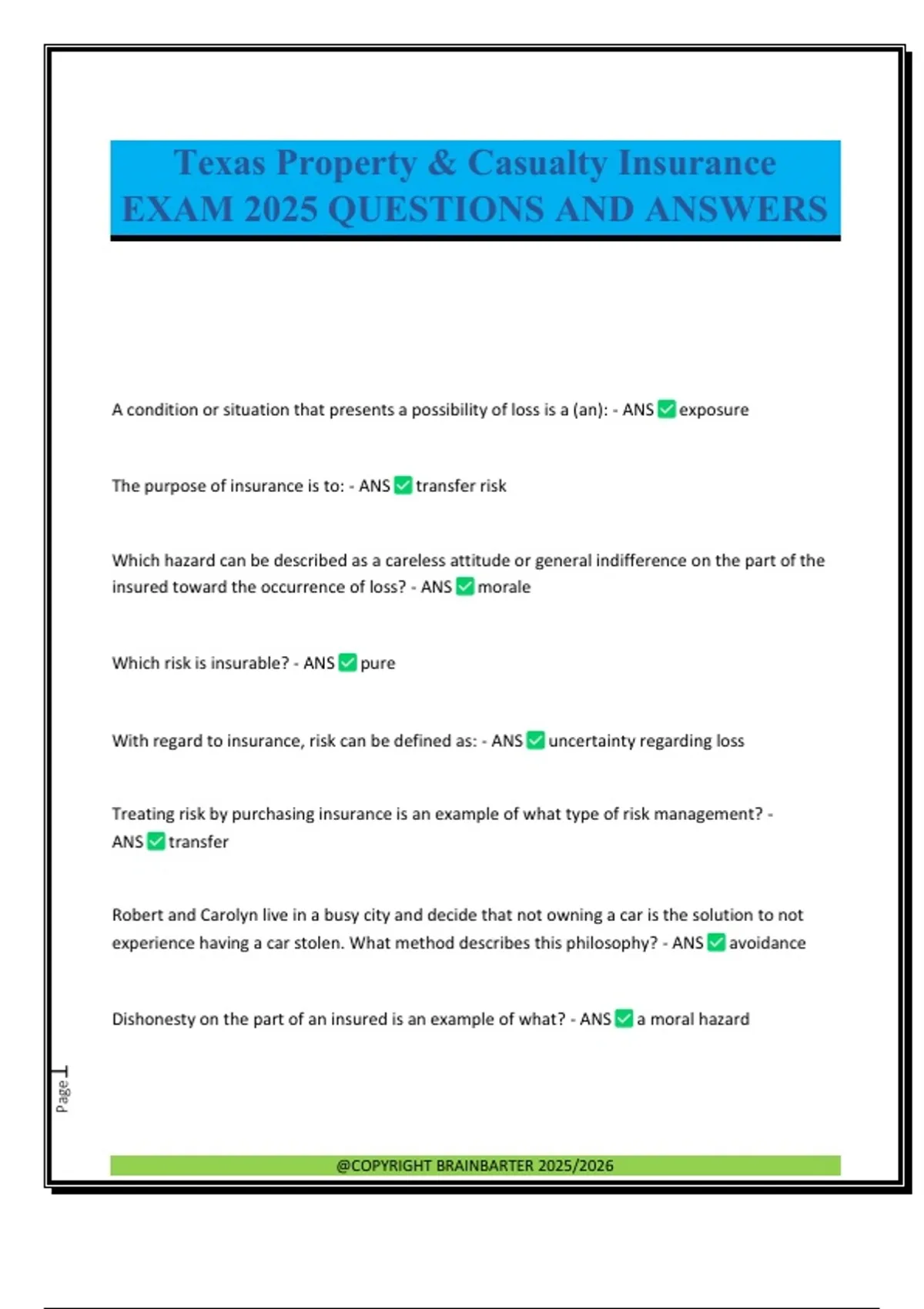 The purpose of insurance is to: - ANS transfer risk