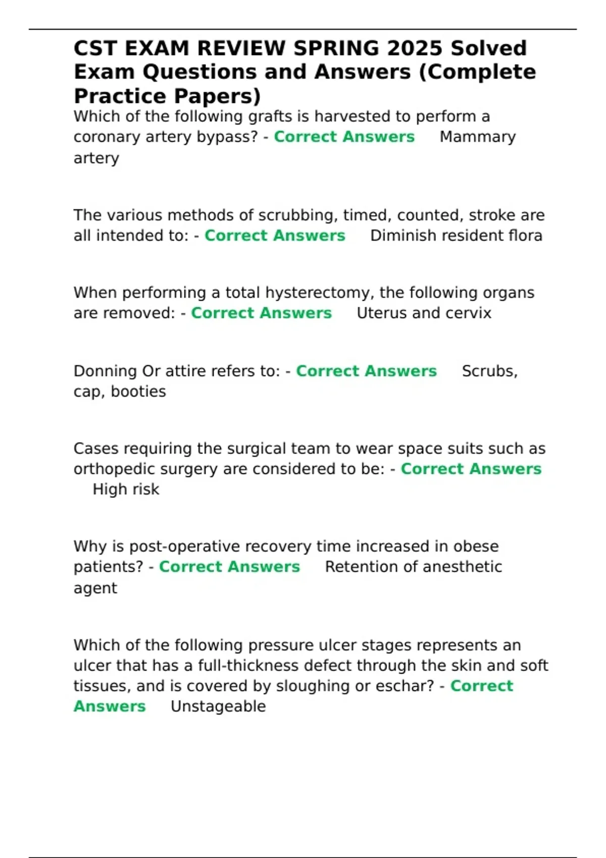 ,CST EXAM REVIEW SPRING 2025 Solved
