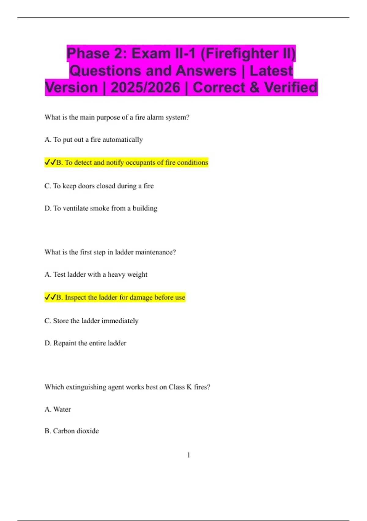 ✔✔B. Inspect the ladder for damage before use