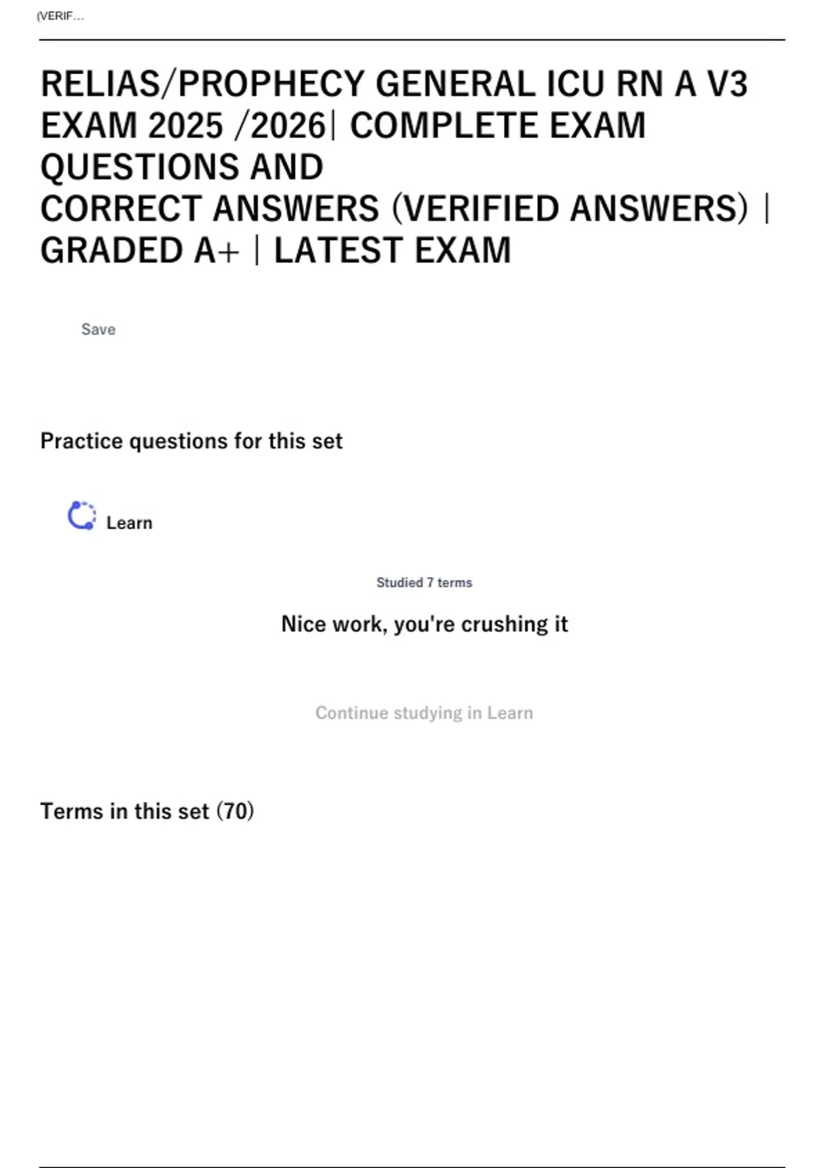 , 1/23/25, 6:10 AM RELIAS/PROPHECY GENERAL ICU RN A V3 EXAM 2025 | COMPLETE EXAM QUESTIONS AND CORRECT ANSWERS