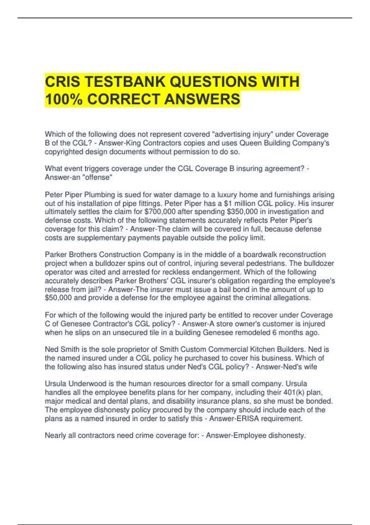 CRIS TESTBANK QUESTIONS WITH 100% CORRECT ANSWERS