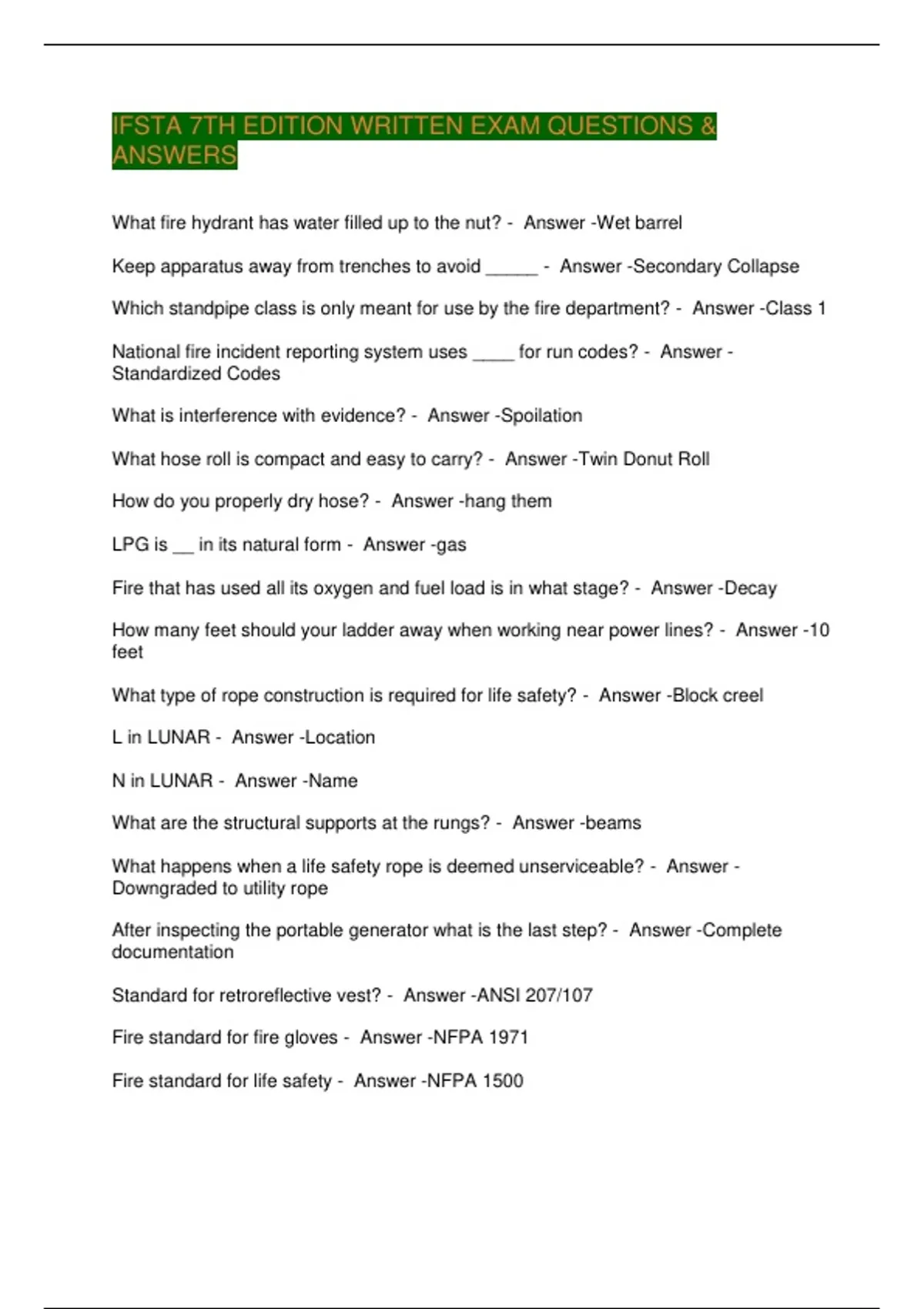IFSTA 7TH EDITION WRITTEN EXAM QUESTIONS & ANSWERS