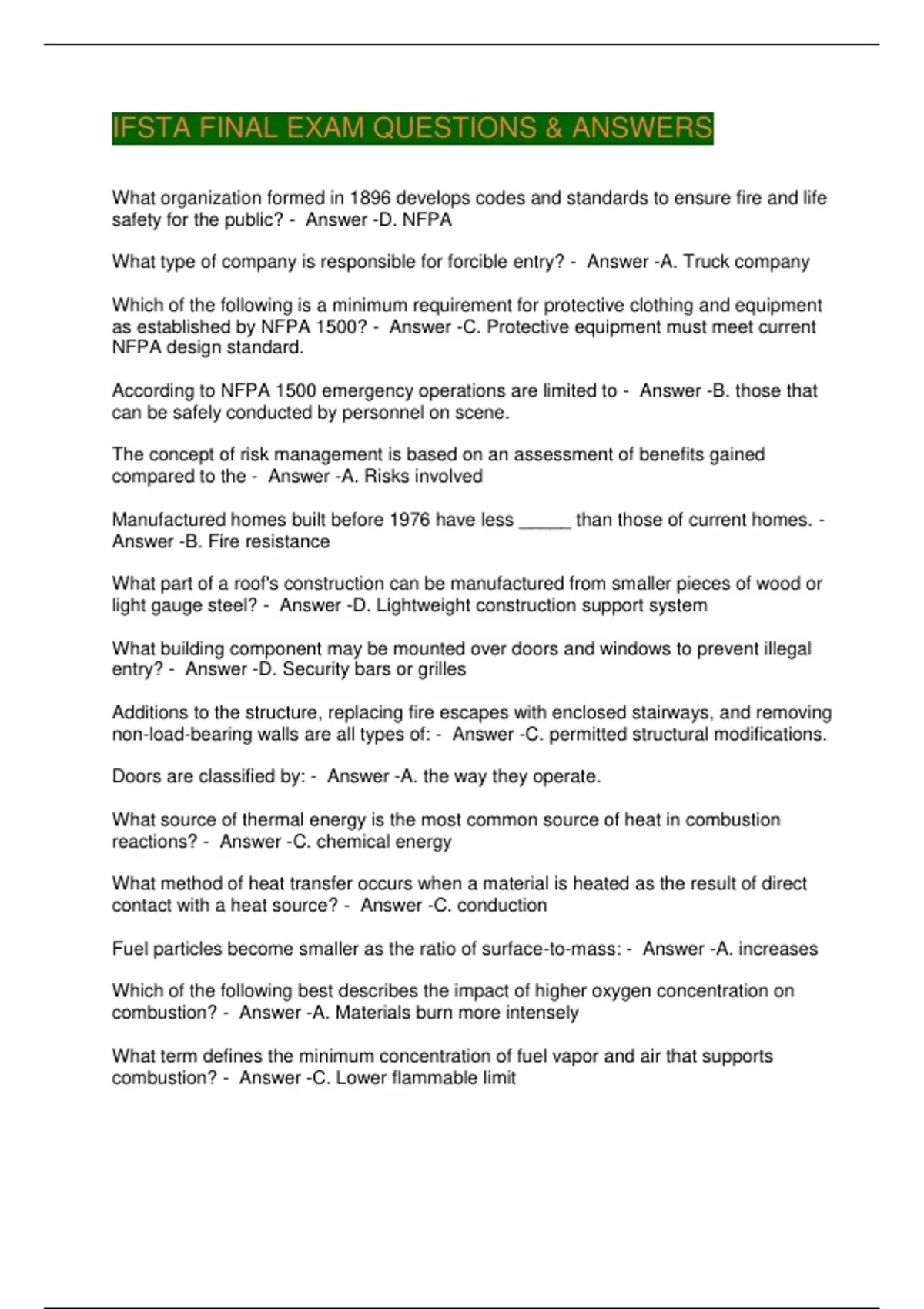 IFSTA FINAL EXAM QUESTIONS & ANSWERS