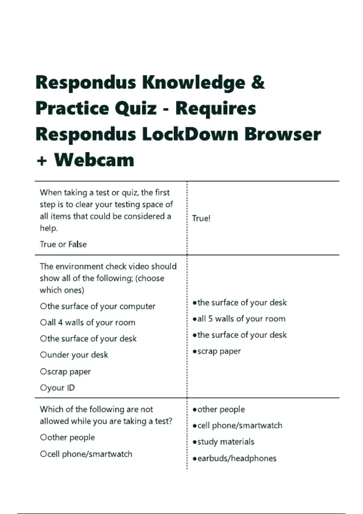 Respondus Knowledge & Practice Quiz - Requires Respondus LockDown Browser + Webcam