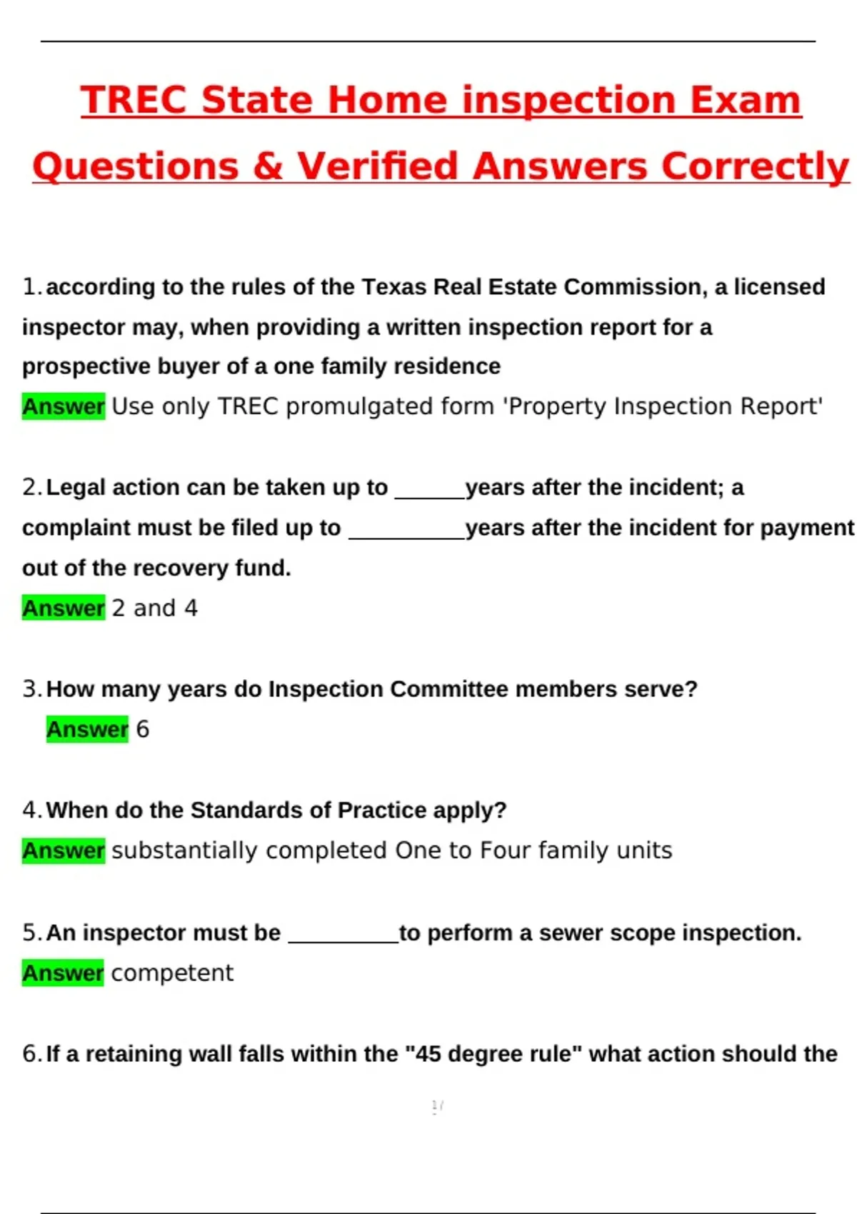 Answer Use only TREC promulgated form 'Property Inspection Report'