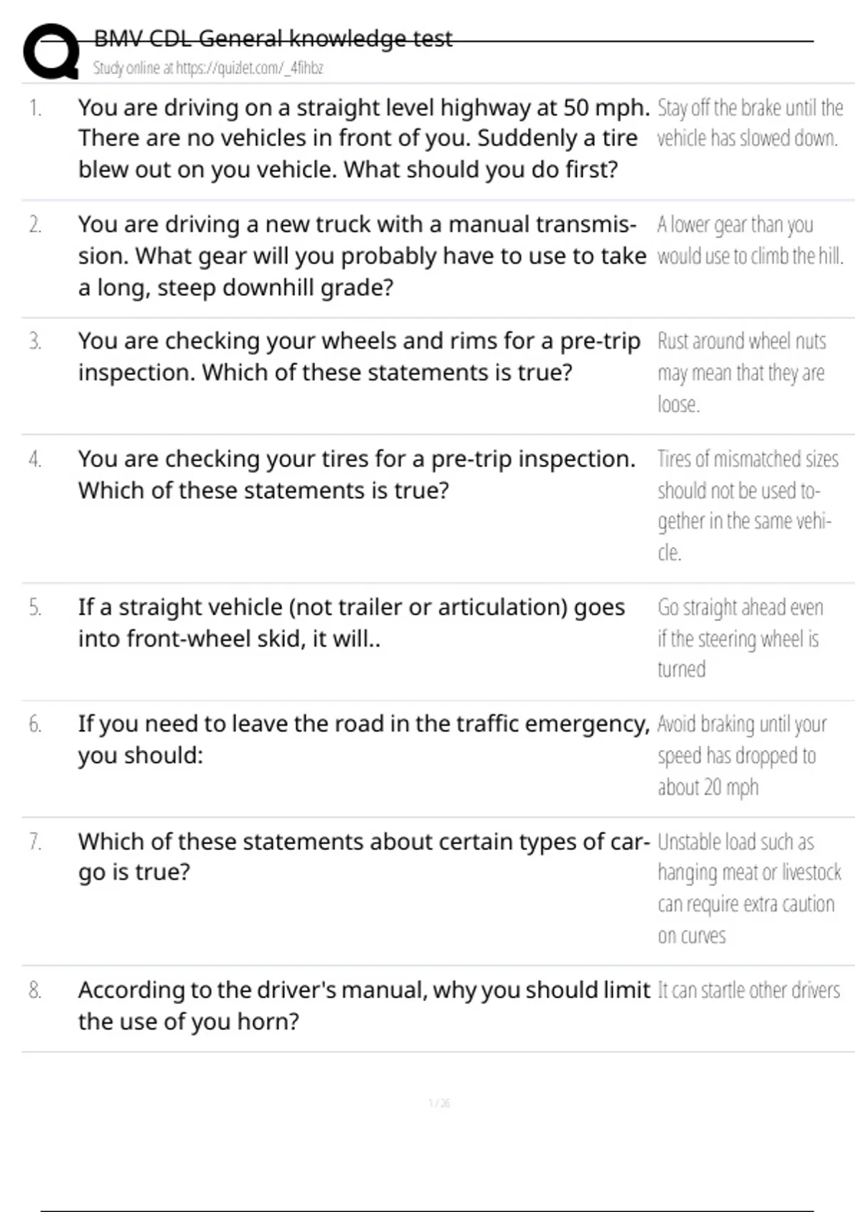 , BMV CDL General knowledge test