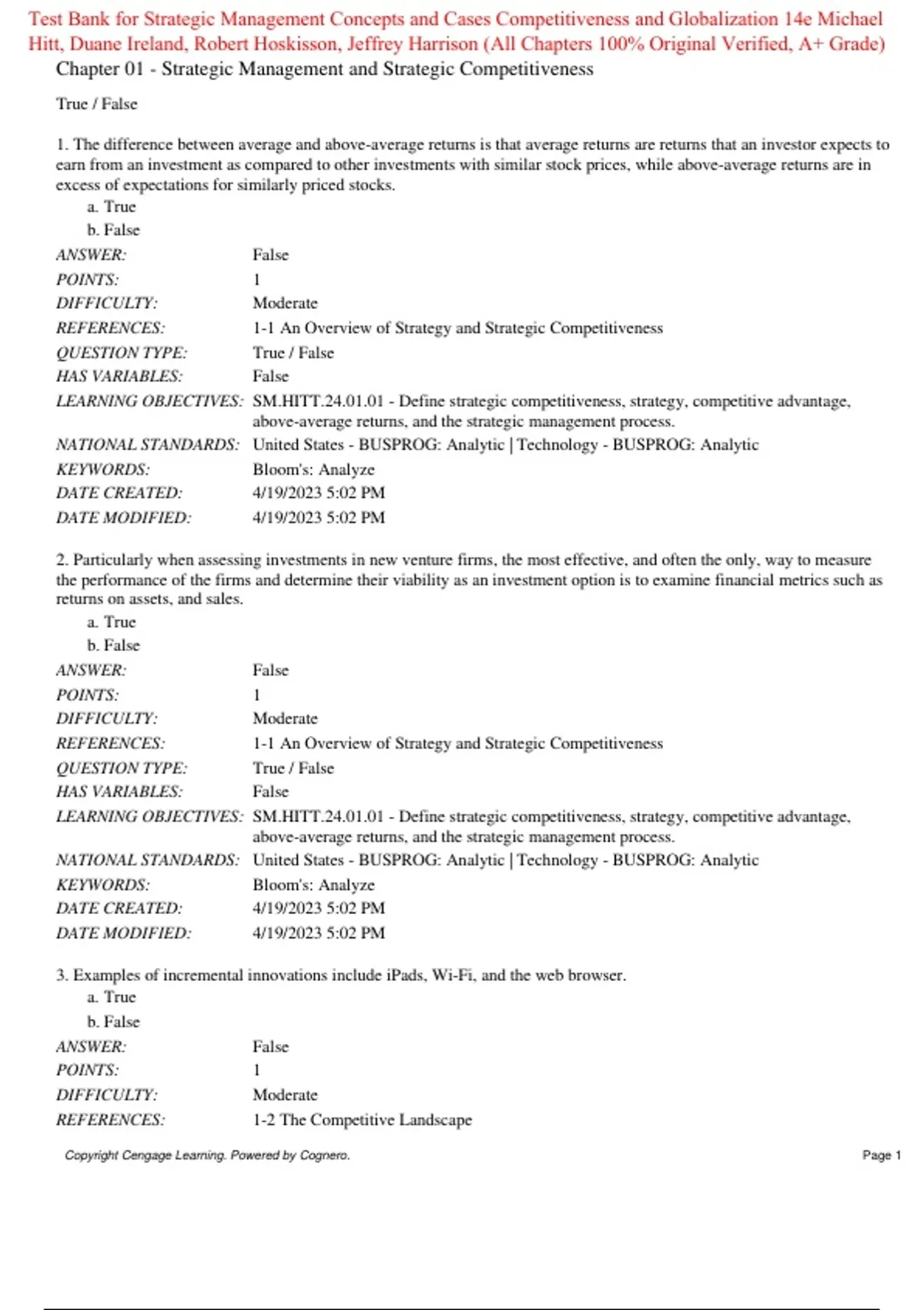 Copyright Cengage Learning. Powered by Cognero. Page 1