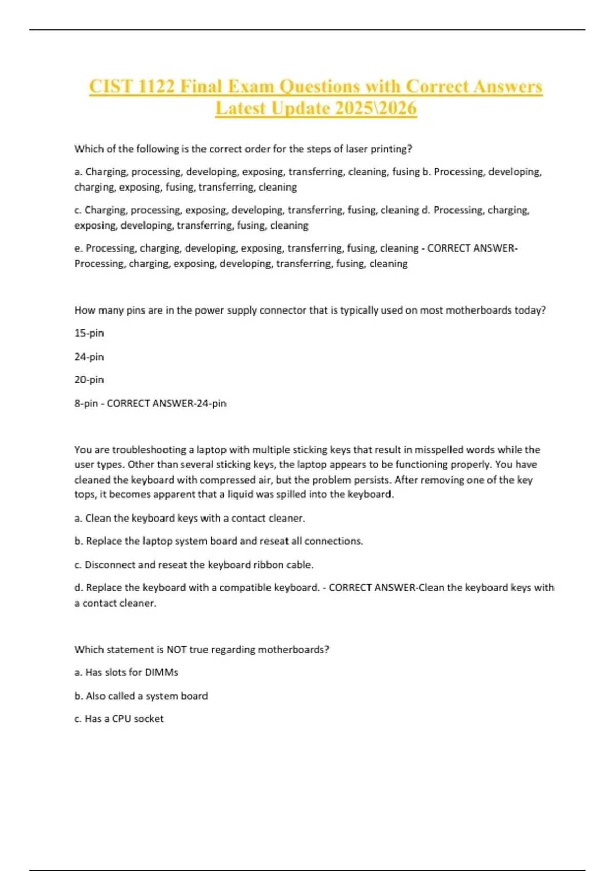 CIST 1122 Final Exam Questions with Correct Answers Latest Update