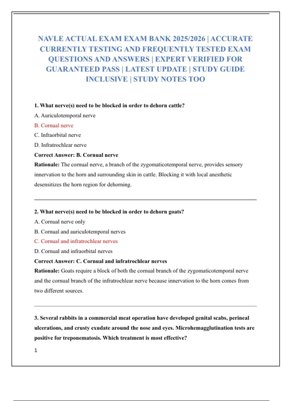 1. What nerve(s) need to be blocked in order to dehorn cattle?
