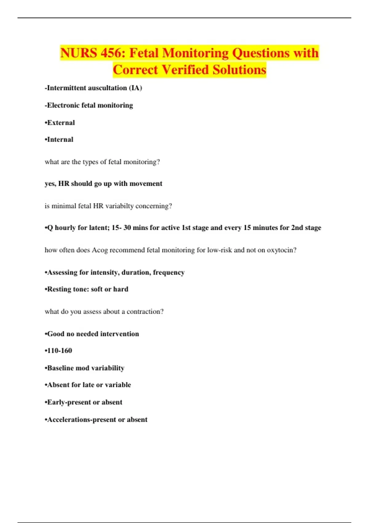 NURS 456: Fetal Monitoring Questions with Correct Verified Solutions