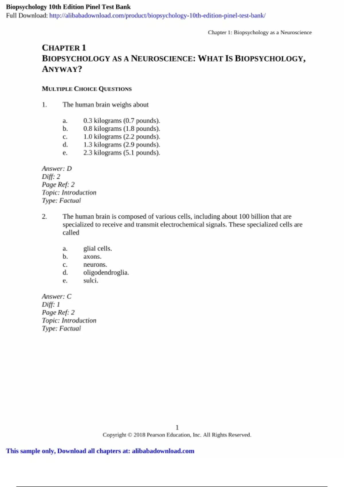 biopsychology 10th edition pinel john test bank