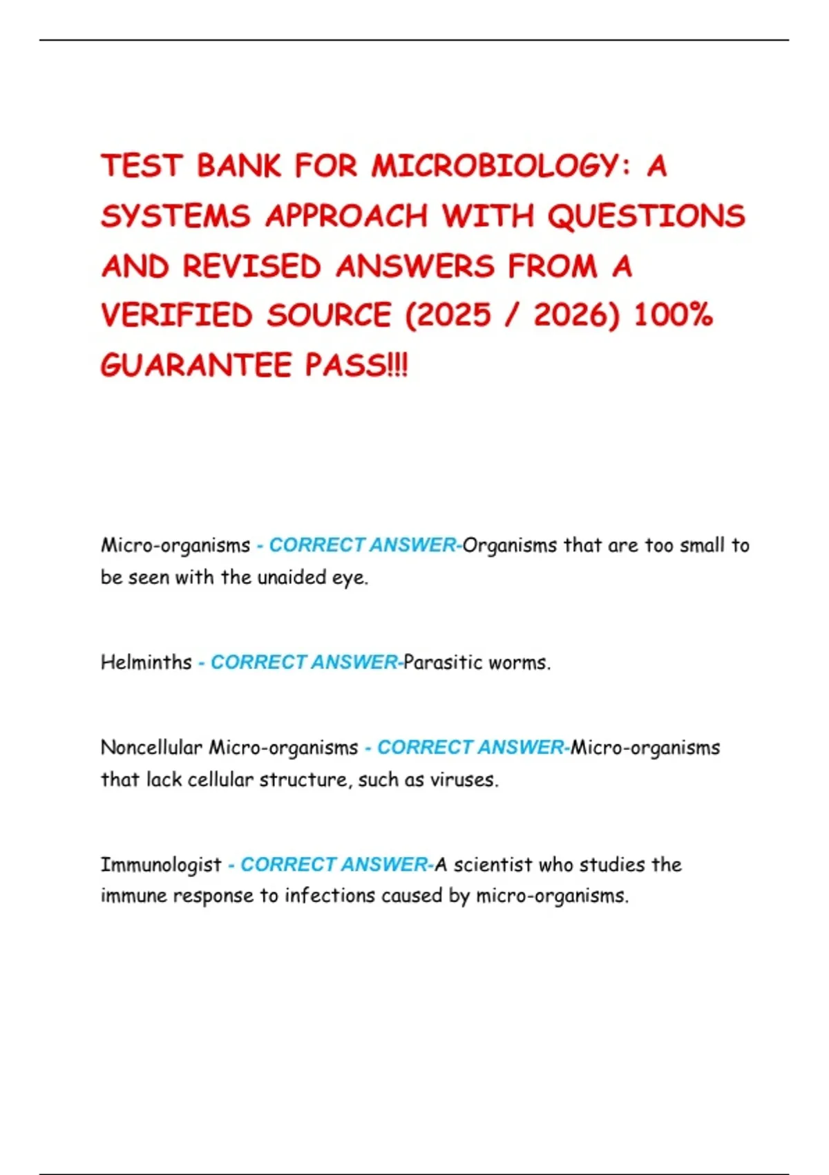 TEST BANK FOR MICROBIOLOGY: A SYSTEMS APPROACH WITH QUESTIONS AND REVISED ANSWERS FROM A VERIFIED SOURCE (2025 / 2026) 100% GUARANTEE PASS!!!