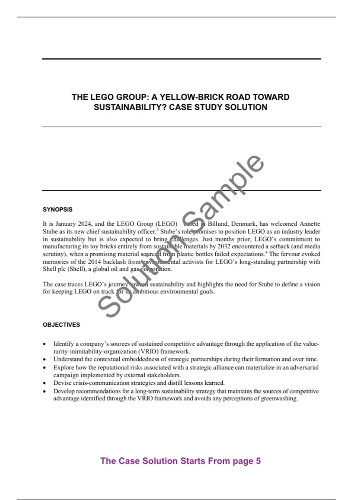 Get the The Lego Group A Yellow-Brick Road toward Sustainability? Case Study Solution and Analysis by Vanessa C. Hasse, Louisa Li | Case ID: W37591. We guarantee that this case solution is 100% original, official, and not AI-generated. It is a plagiarism-free, complete, and well-structured solution, perfect for exam preparation, assignments, and research.