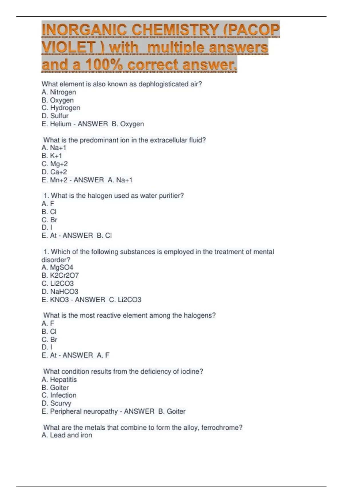 E. Helium - ANSWER B. Oxygen