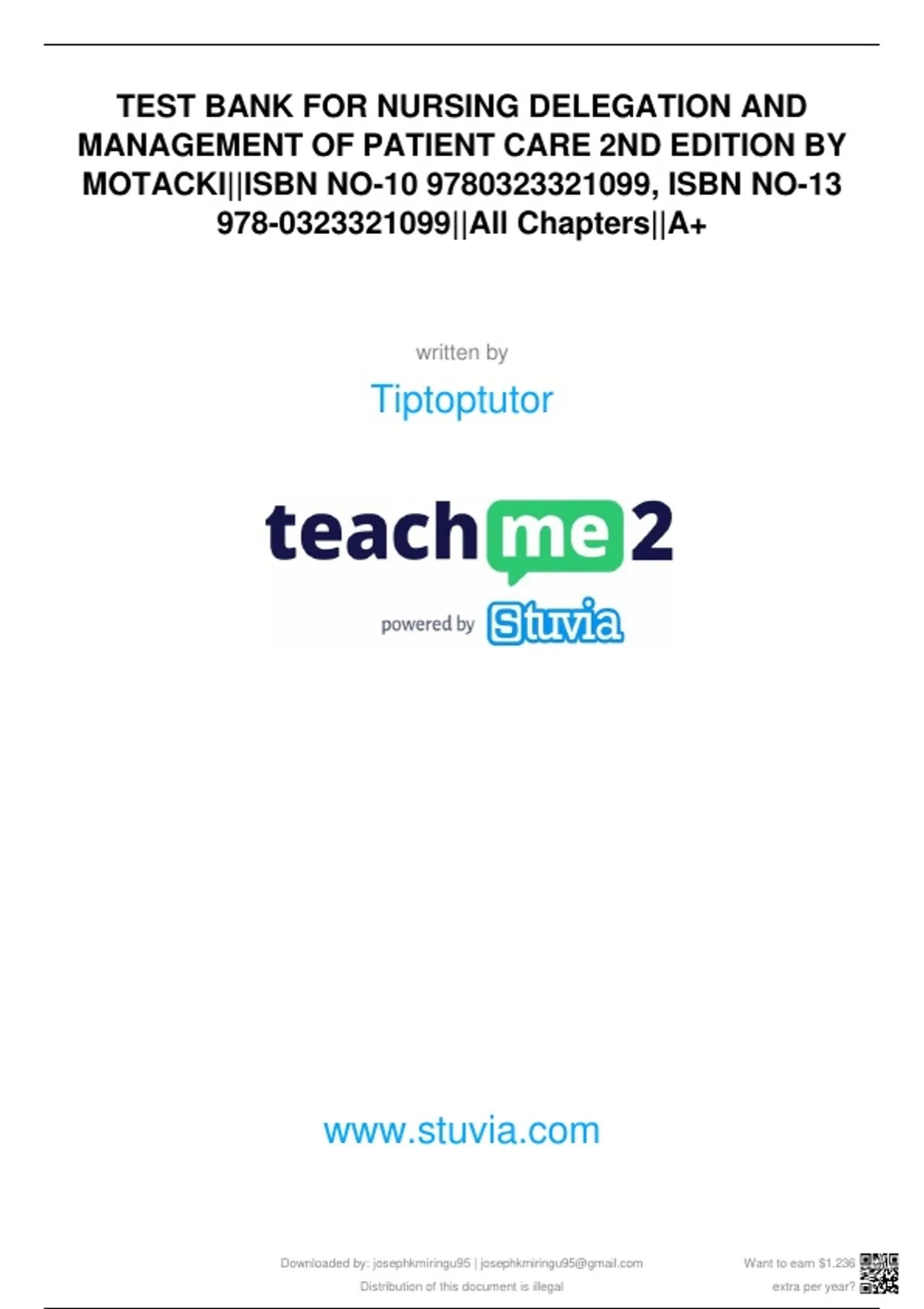 TEST BANK FOR NURSING DELEGATION AND MANAGEMENT OF PATIENT CARE 2ND EDITION BY MOTACKI