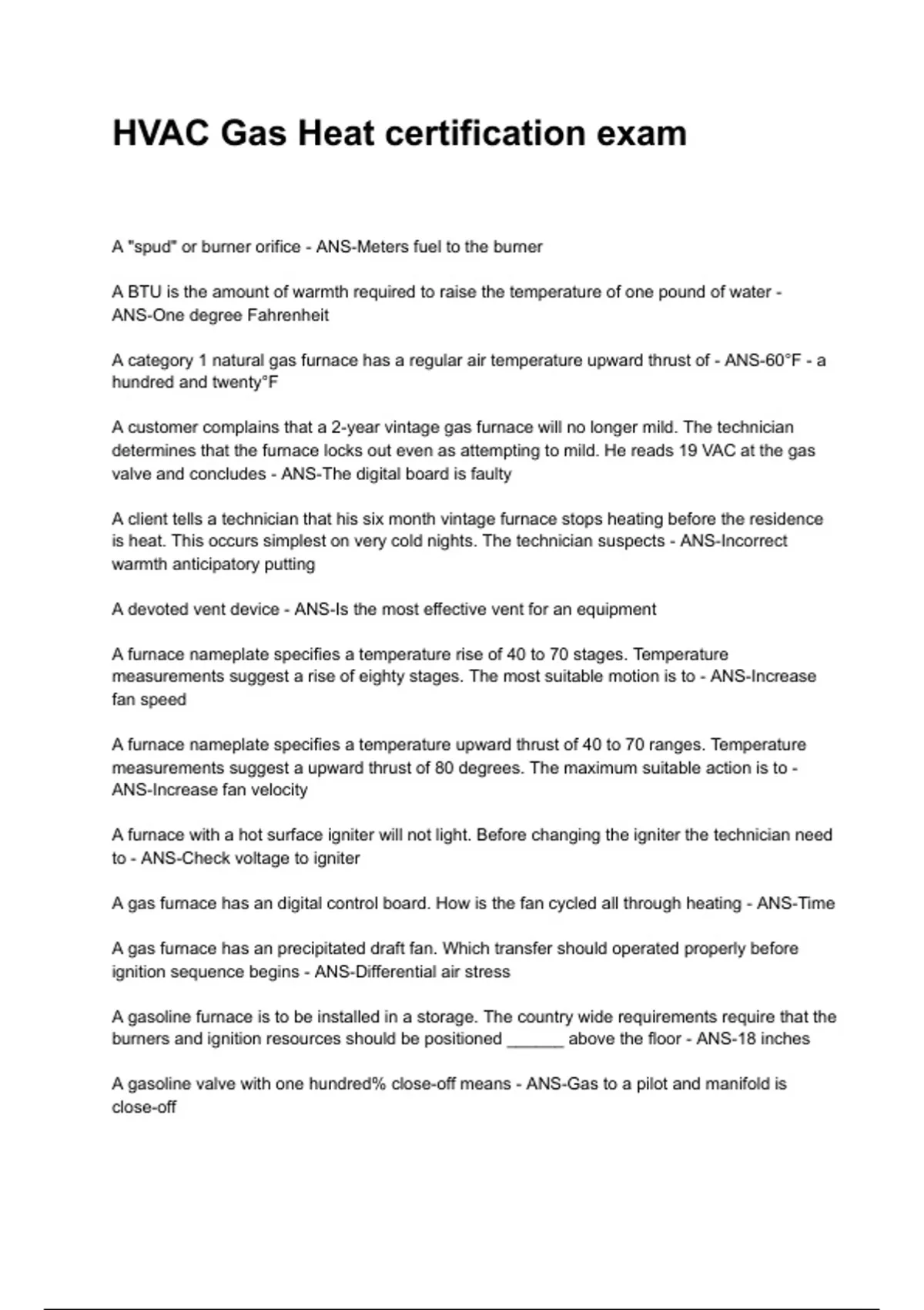HVAC Gas Heat certification exam