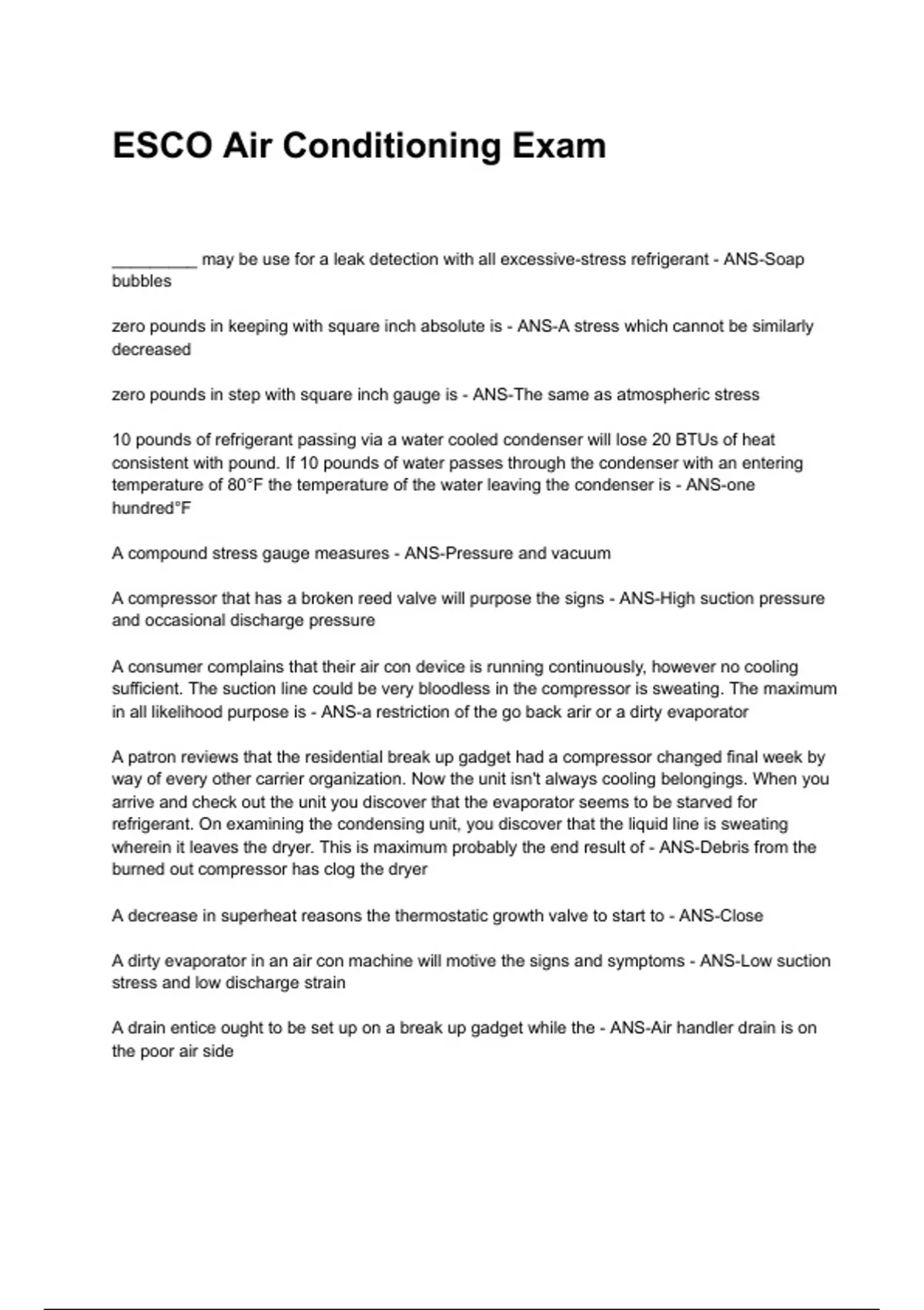 ESCO Air Conditioning Exam