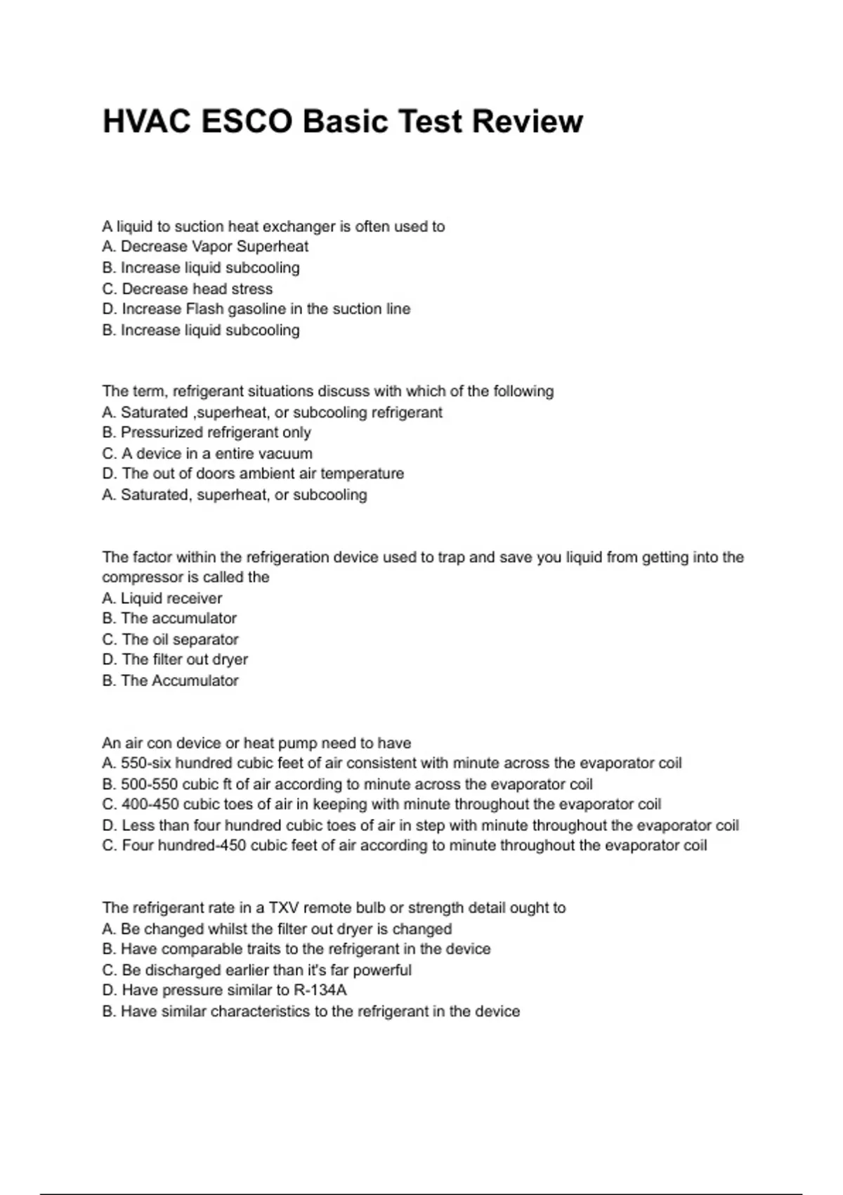 HVAC ESCO Basic Test Review