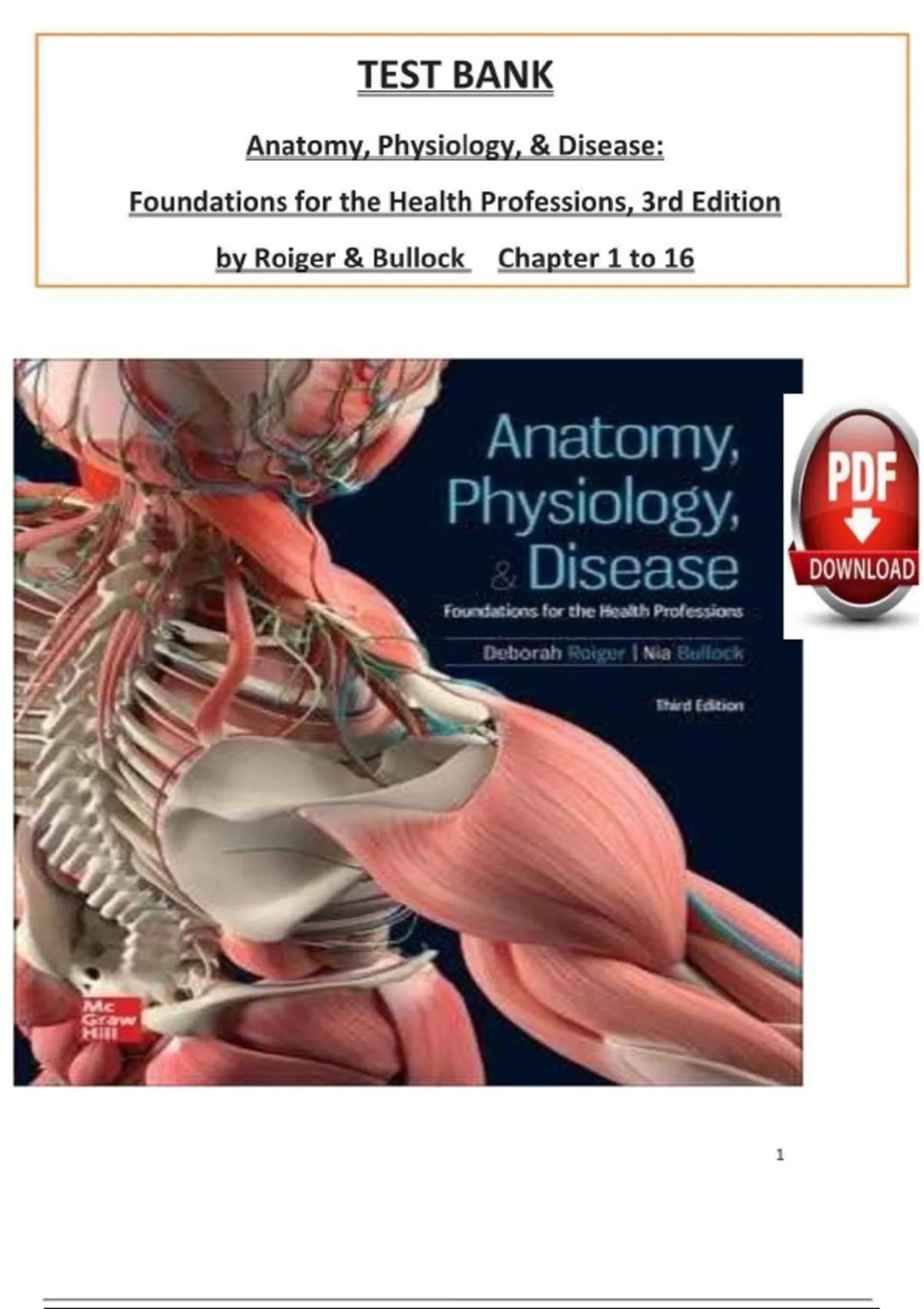 Anatomy, Physiology, & Disease – Foundations for the Health Professions (3rd Edition, Deborah Roiger & Nia Bullock) | Complete Test Bank with Chapter-Based Questions and Answers