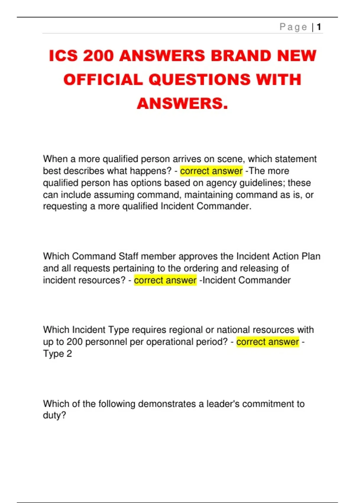 ICS 200 ANSWERS BRAND NEW OFFICIAL QUESTIONS WITH ANSWERS.