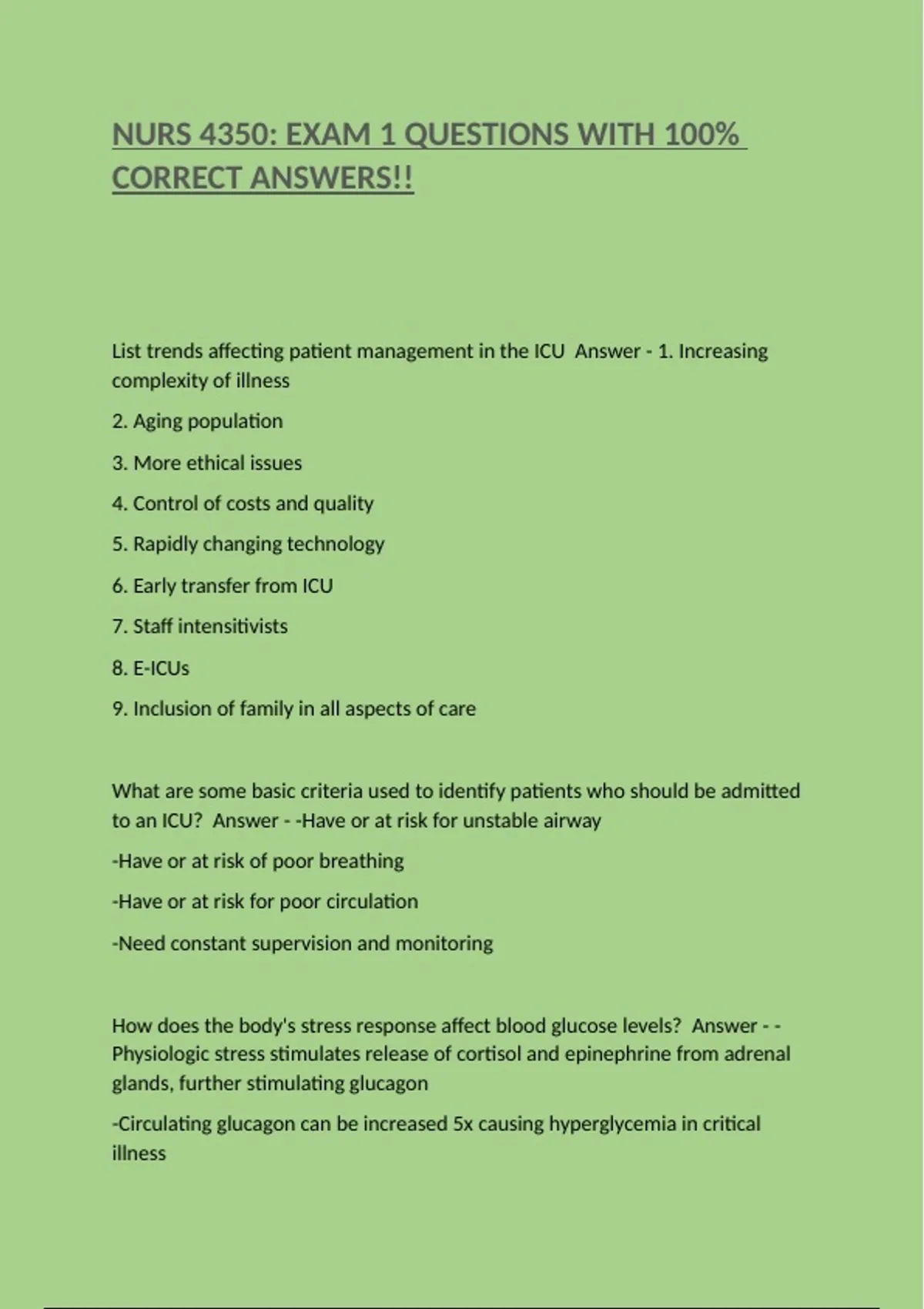 List trends affecting patient management in the ICU Answer - 1. Increasing