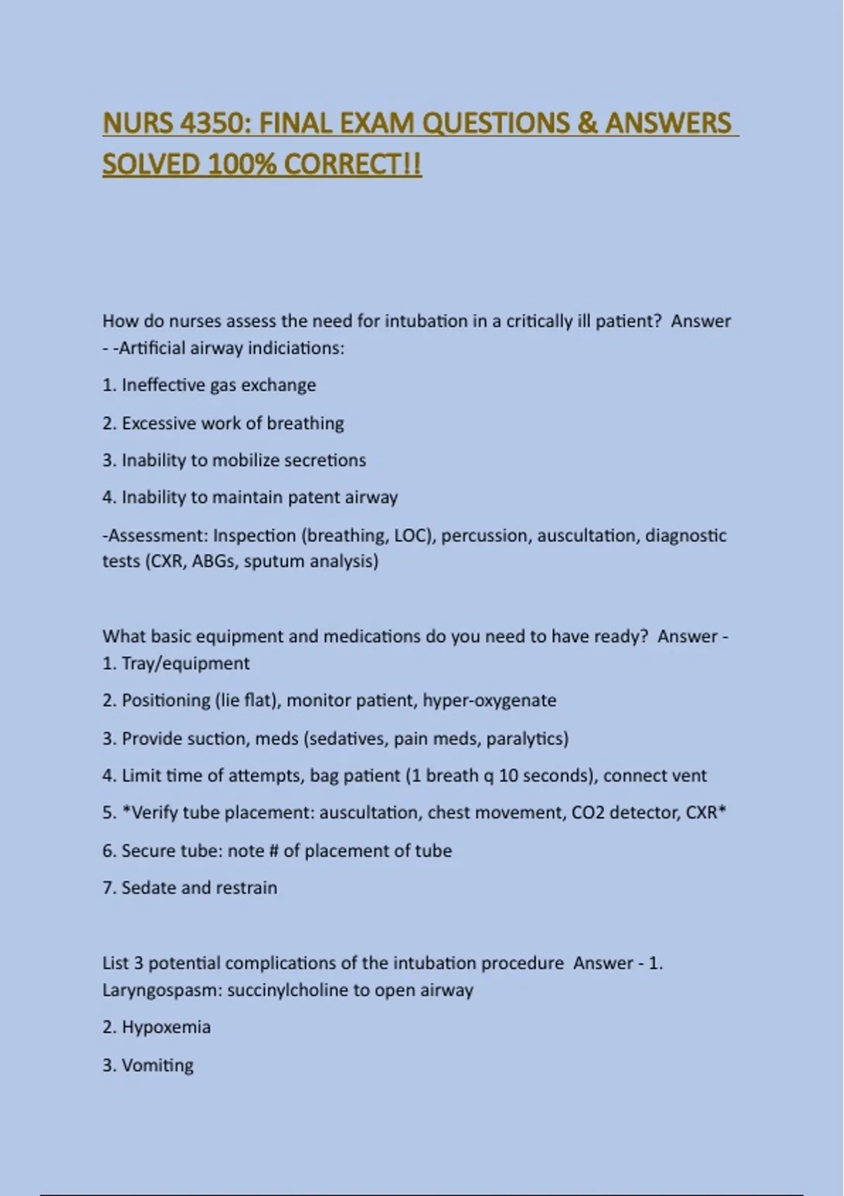 NURS 4350: FINAL EXAM QUESTIONS & ANSWERS