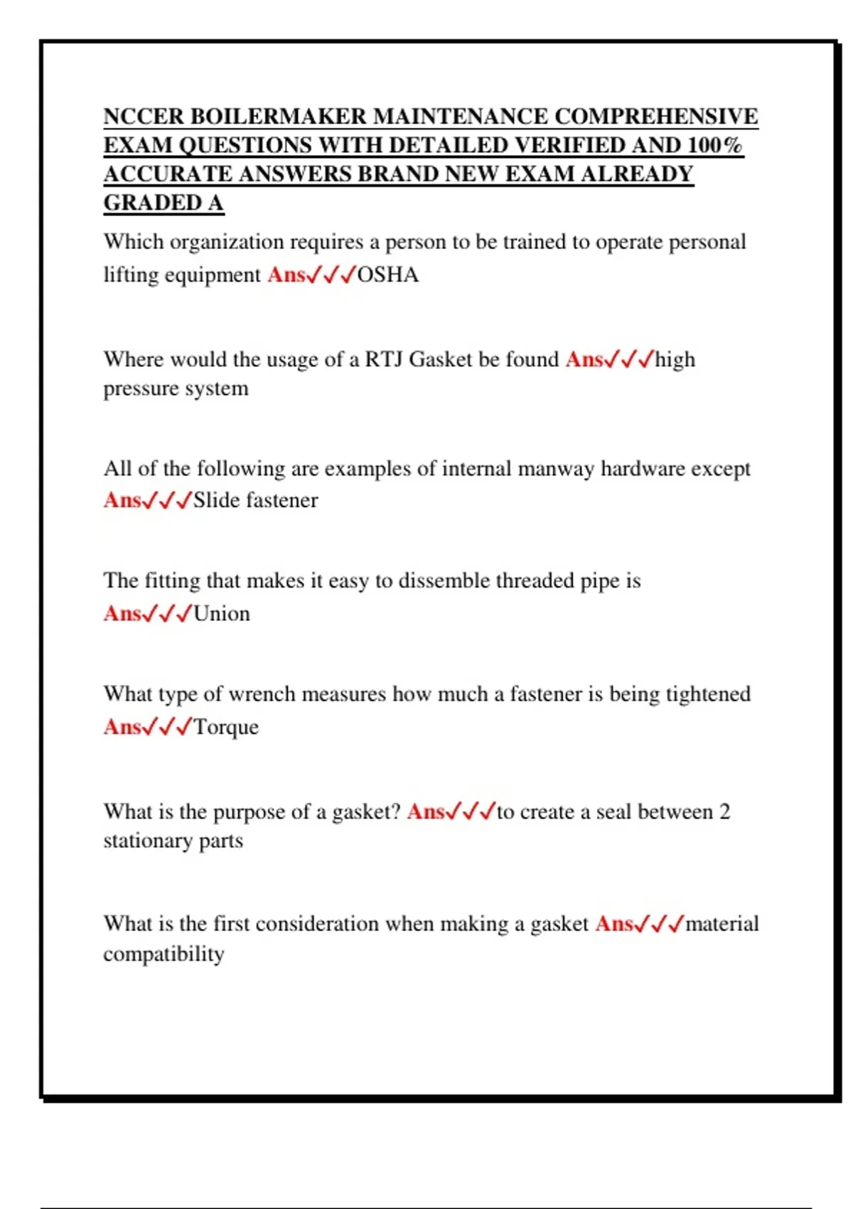 NCCER BOILERMAKER MAINTENANCE COMPREHENSIVE EXAM QUESTIONS WITH DETAILED VERIFIED AND 100% ACCURATE ANSWERS BRAND NEW EXAM ALREADY GRADED A