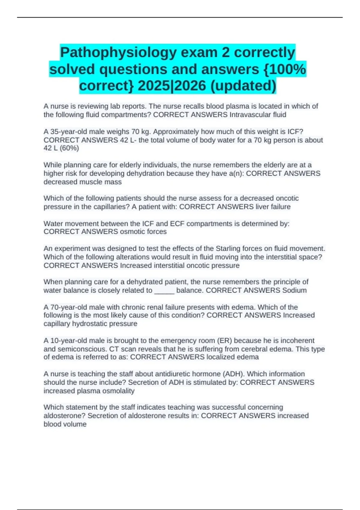 Pathophysiology exam 2 correctly solved questions and answers {100% correct} 2025|2026 (updated)