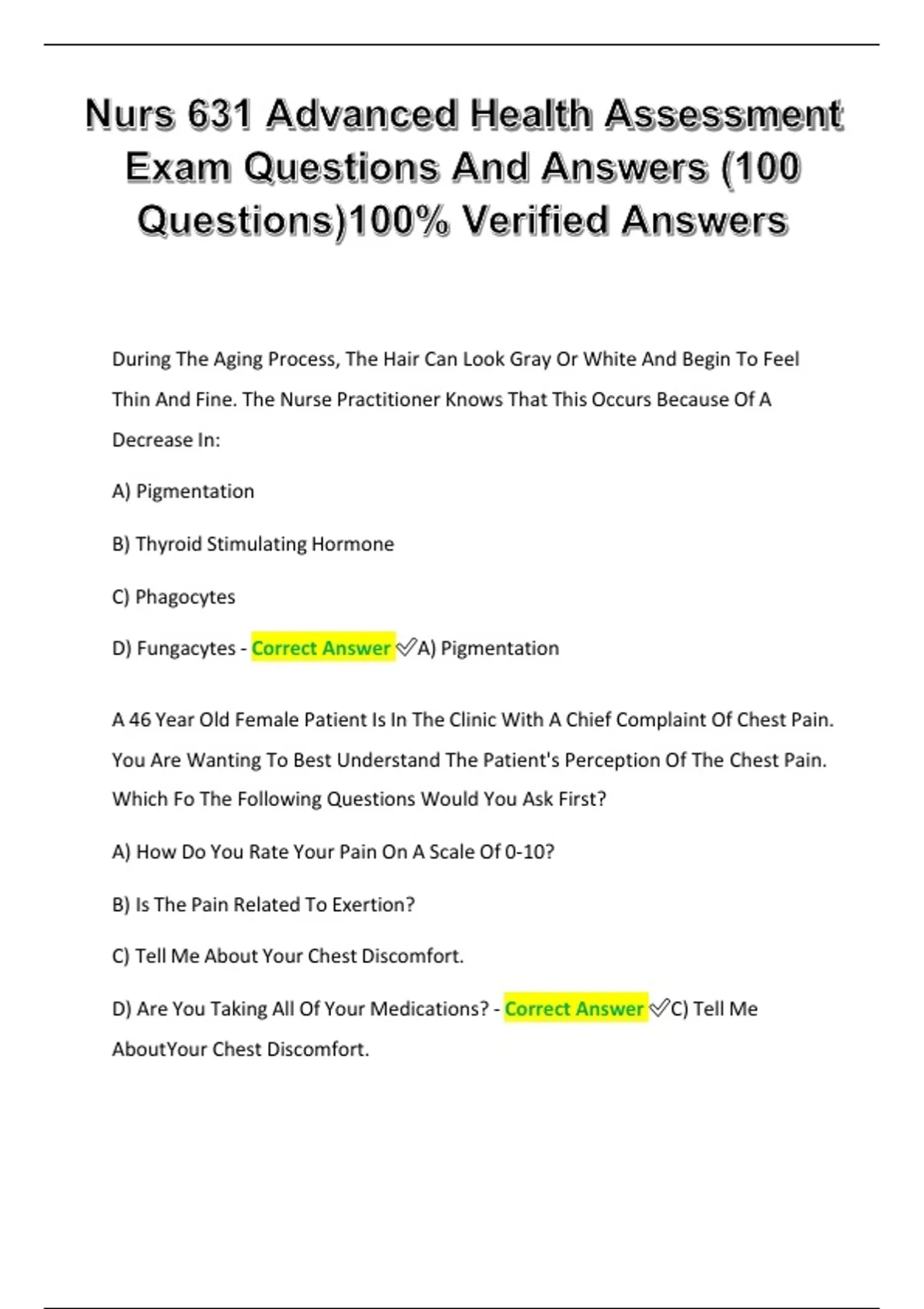 NUR 631 ADVANCED HEALTH ASSESSMENT EXAM 4 LATEST 2025 WITH 100 EXAM PREP QUESTIONS AND CORRECT VERIFIED ANSWERS/ NUR631 EXAM 4 ADV HEALTH ASSESSMENT LATEST 2025.