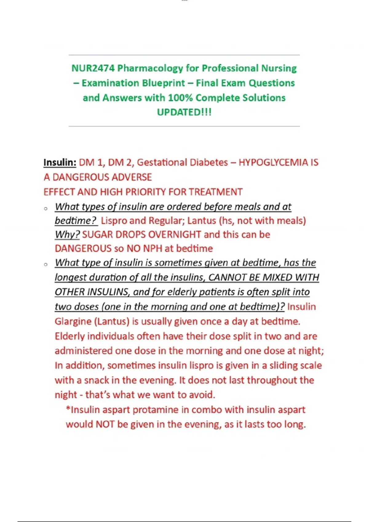 NUR2474 Pharmacology for Professional Nursing – Examination Blueprint – Final Exam Questions and Answers with 100% Complete Solutions UPDATED!!!