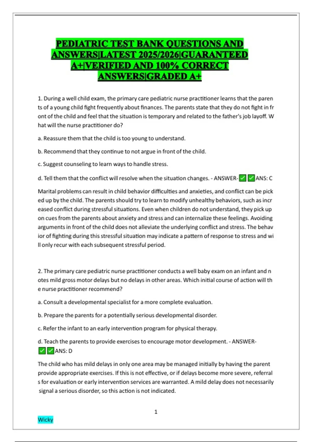 1. During a well child exam, the primary care pediatric nurse practitioner learns that the paren