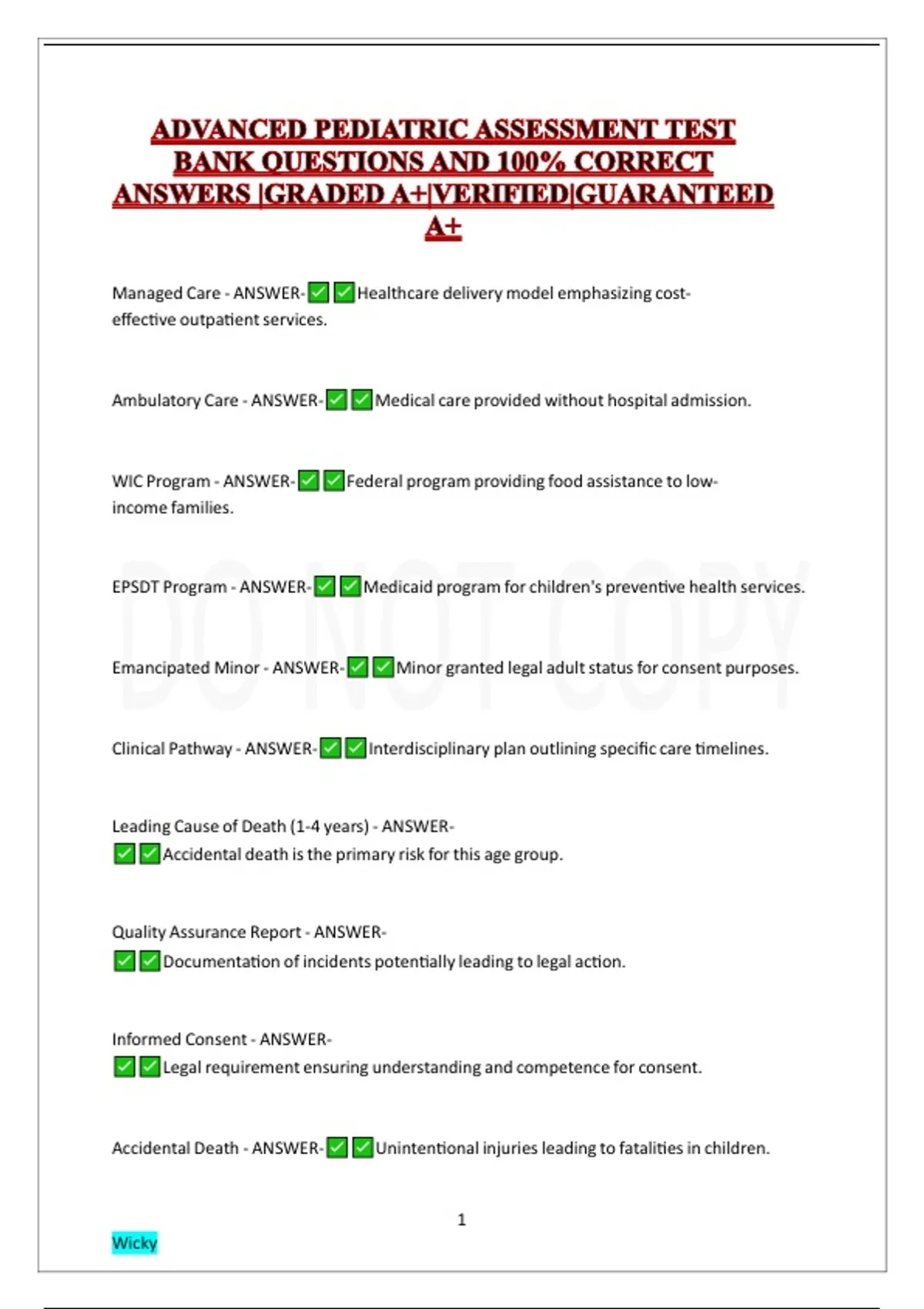 ADVANCED PEDIATRIC ASSESSMENT TEST BANK QUESTIONS AND 100% CORRECT ANSWERS |GRADED A+|VERIFIED|GUARANTEED A+