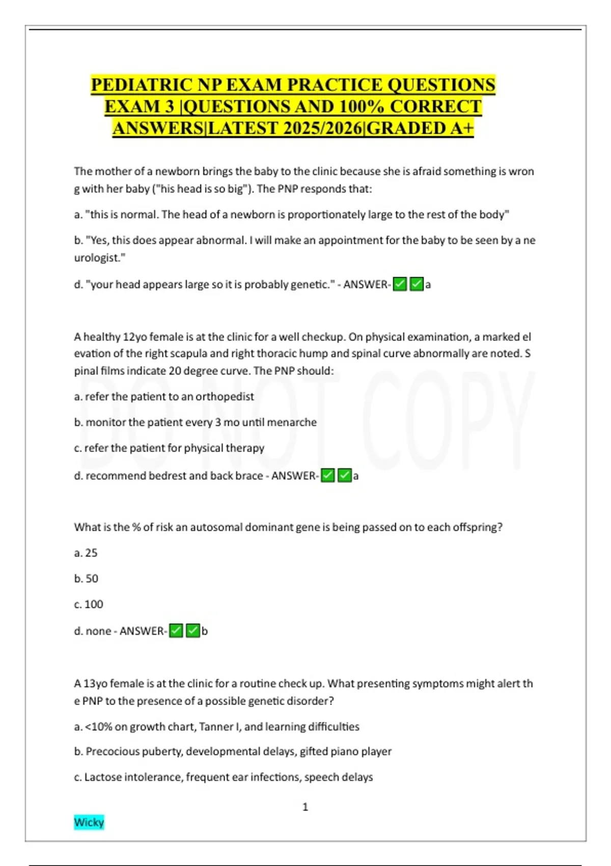 PEDIATRIC NP EXAM PRACTICE QUESTIONS EXAM 3 |QUESTIONS AND 100% CORRECT ANSWERS|LATEST 2025/2026|GRADED A+