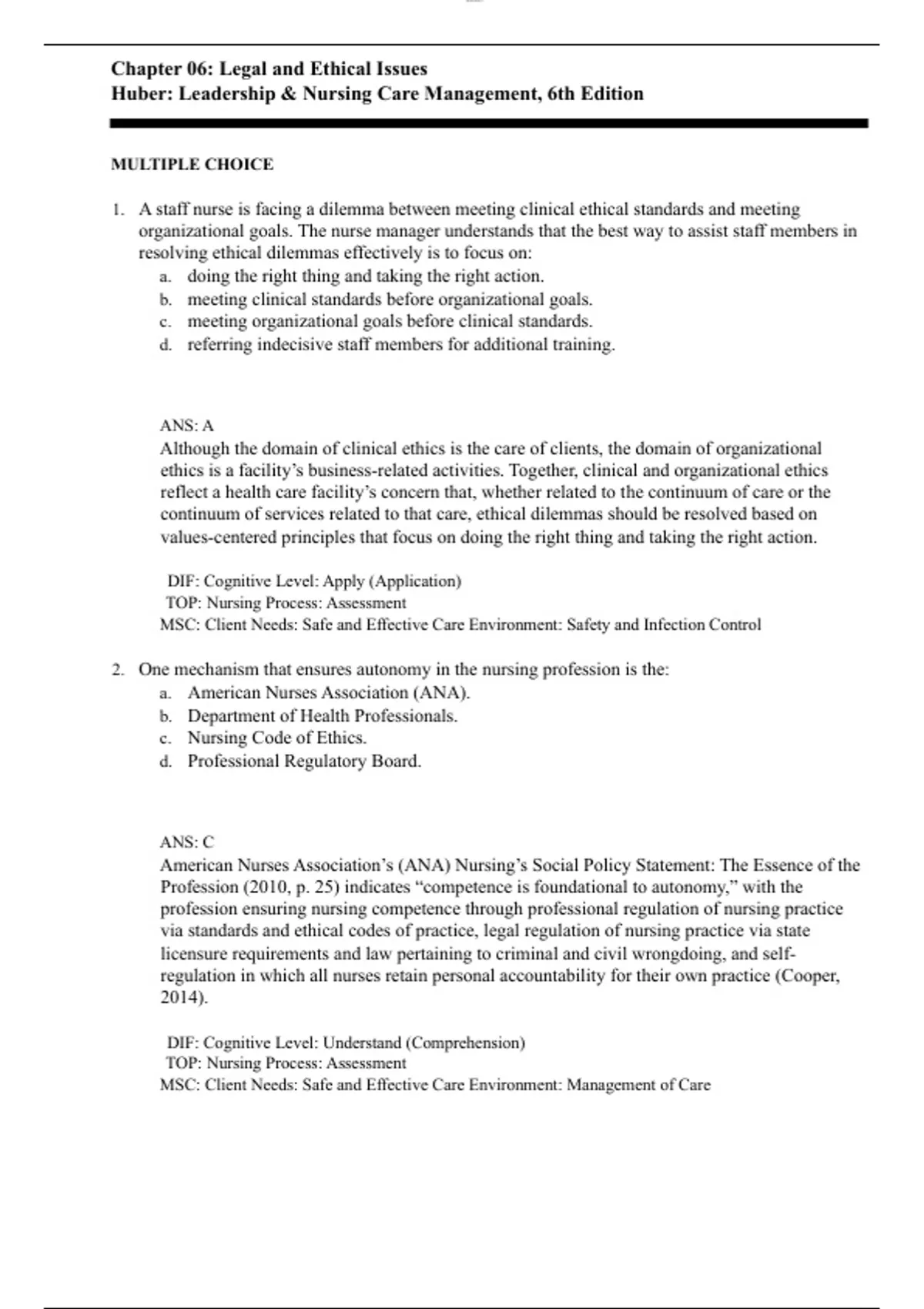 Chapter 06 Legal and Ethical Issues Questions and Answers with 100% Complete Solutions UPDATED!!!