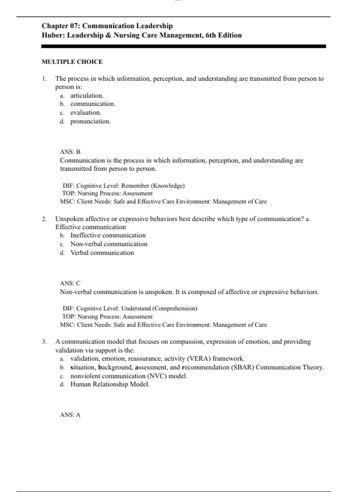 Chapter 07 Communication Leadership Questions and Answers with 100% Complete Solutions UPDATED!!!