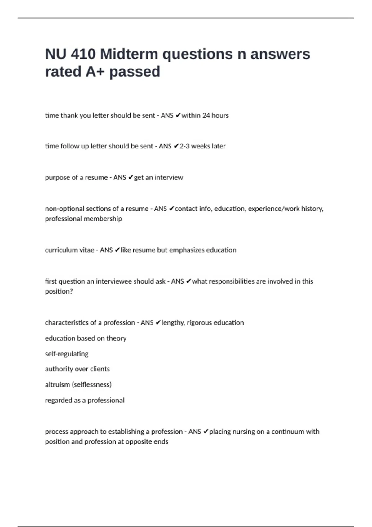 non-optional sections of a resume - ANS ✔contact info, education, experience/work history,