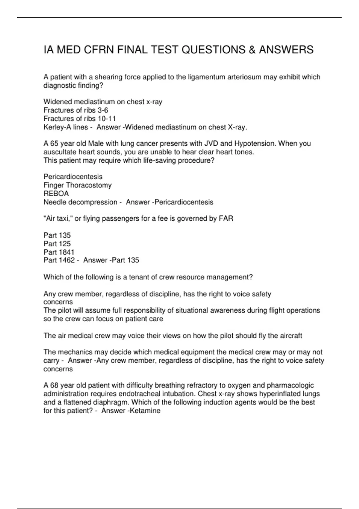 IA MED CFRN FINAL TEST QUESTIONS & ANSWERS